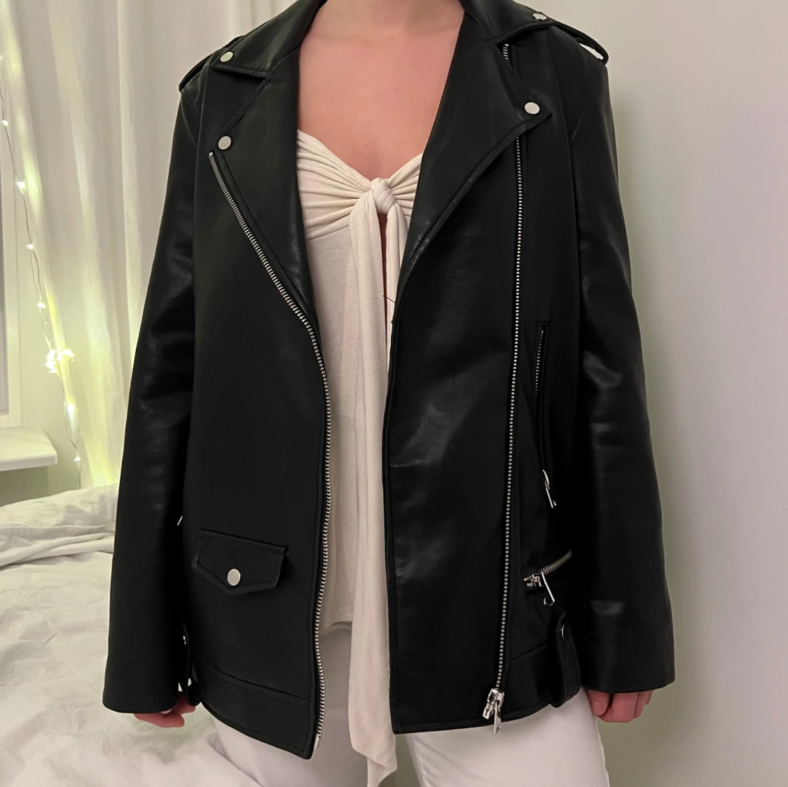 Stradivarius skinnjacka i nytt skick, lite oversized och längre i modellen. 🫶