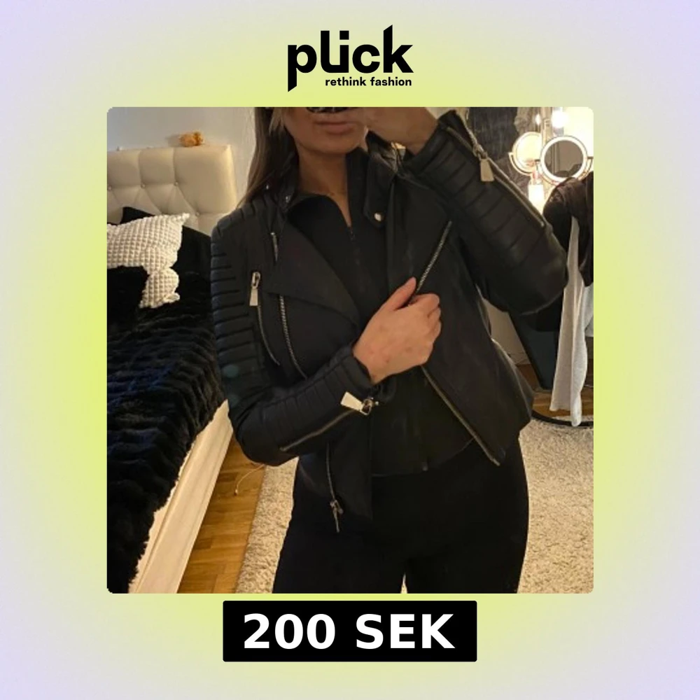 Snygg svart skinnjacka med coola dragkedjedetaljer och bälte i midjan. Jackan har en klassisk bikerstil med quiltade axlar och långa ärmar. Perfekt för en edgy look!