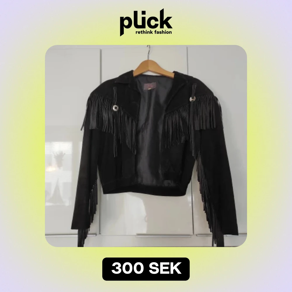 Säljer en supercool svart mockajacka från Svelte Leather, Melbourne. Köpt i Australien. Den har långa ärmar och är dekorerad med fransar både fram och bak, vilket ger den en unik och edgy look.