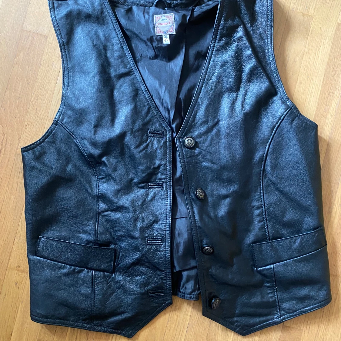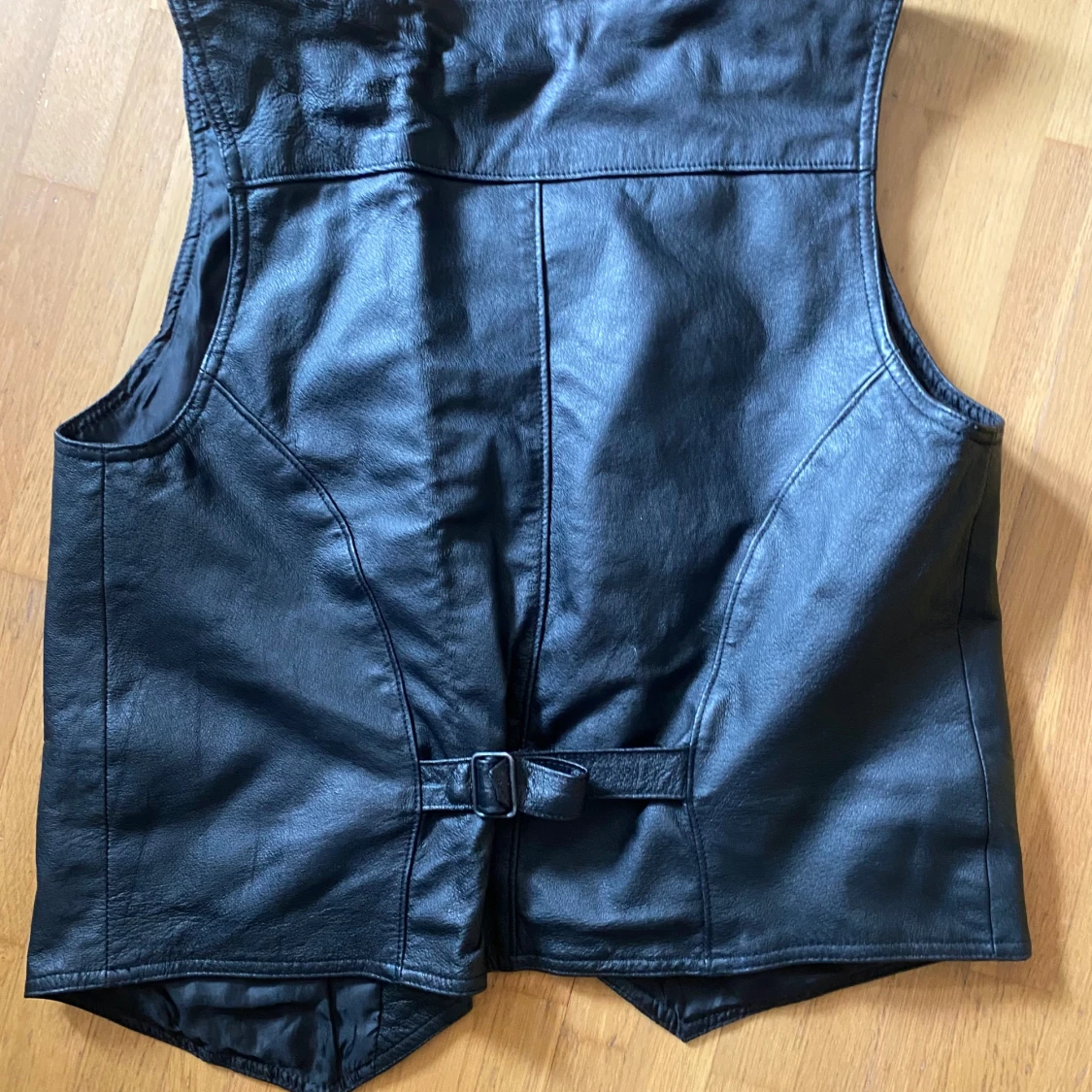 Svart skinnväst i nappa från Lindex Connect med klassisk v-ringad design och knappar framtill. Västen har två fickor fram och ett justerbart bälte i ryggen för snygg passform. Perfekt att styla över en t-shirt eller skjorta för en cool look.
