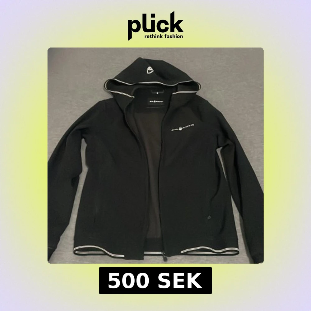 Svart softshelljacka från Sail Racing med huva och vita detaljer längs kanterna. Jackan har dragkedja framtill, logga på bröstet och är tillverkad i stretchig polyesterblandning. Perfekt för dig som gillar sportig och clean stil.