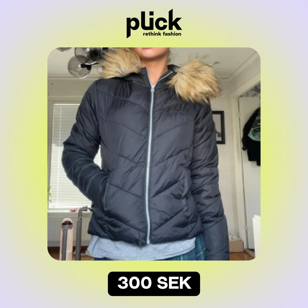 Säljer en snygg svart pufferjacka från Svea med en mysig fuskpäls på huvan. Jackan har en dragkedja framtill och är perfekt för kalla dagar. Den är tillverkad i nylon med polyesterfyllning, vilket gör den både varm och bekväm. Perfekt för vintern!