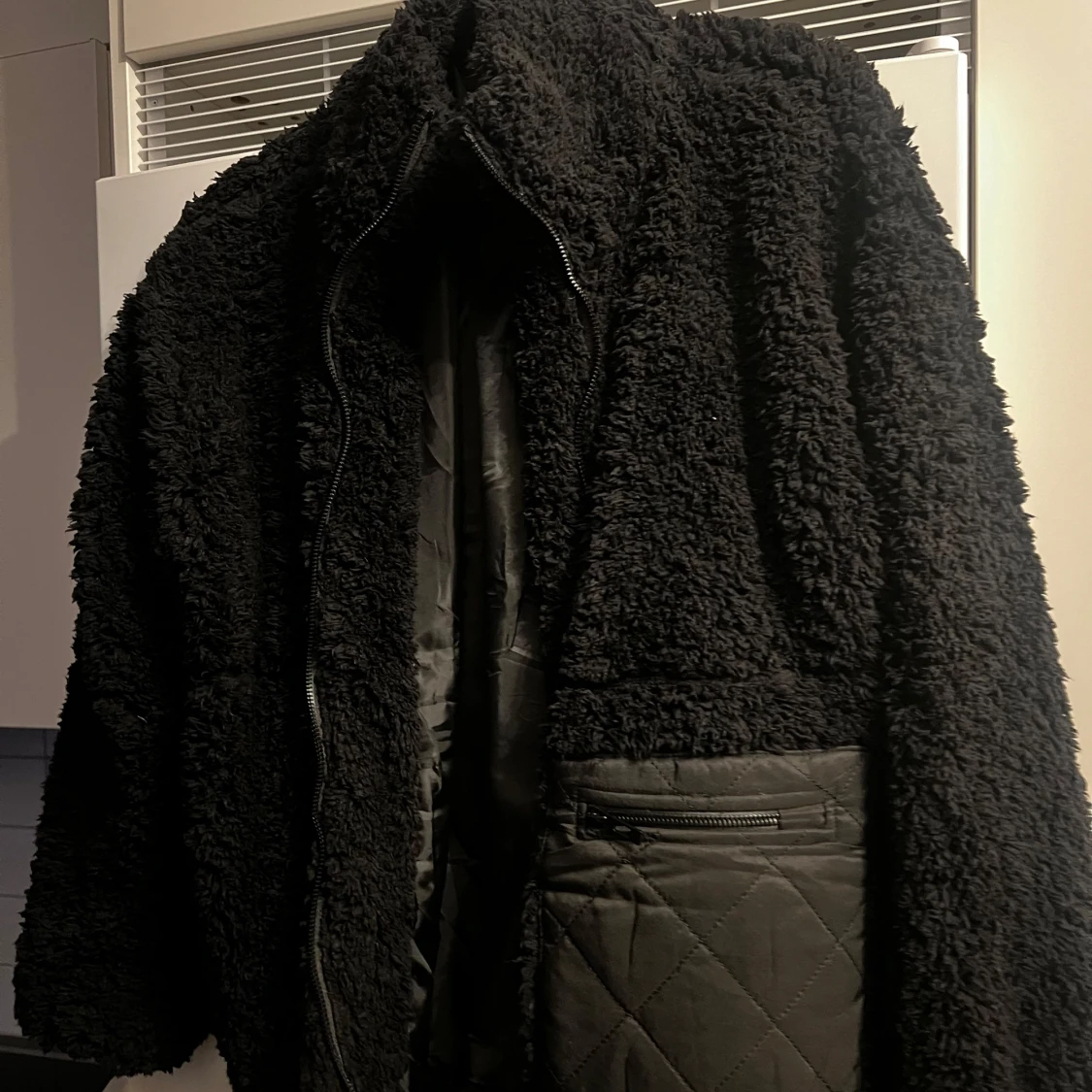Mysig svart teddyjacka från Boohoo i storlek 10. Perfekt för kalla dagar med sitt fluffiga material och quiltade detaljer. Jackan har en dragkedja framtill och en innerficka för extra förvaring. Den är både stilren och bekväm, idealisk för höst och vinter. Liten i strl mer som en M 🌸
