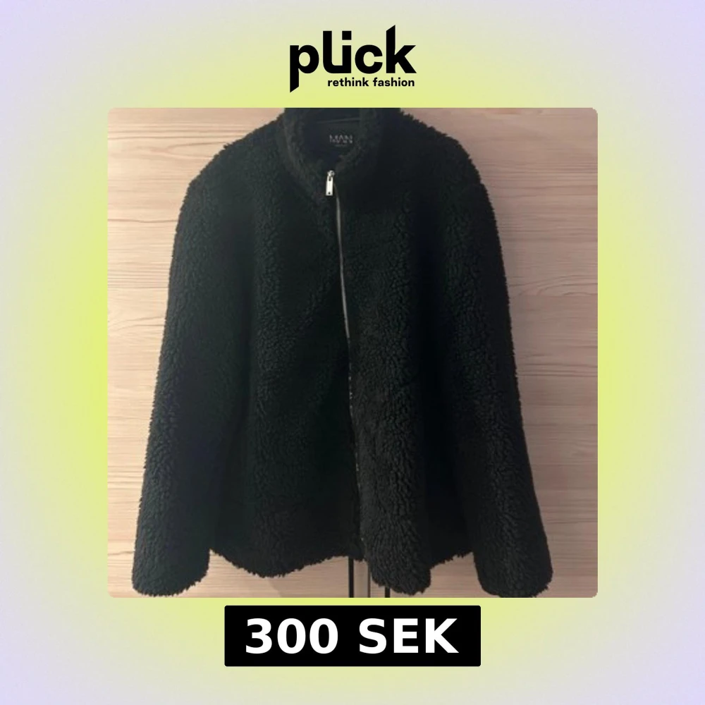 Mysig svart teddyjacka från boohooMAN i storlek L. Jackan har en hög krage, dragkedja framtill och är tillverkad i ett fluffigt teddy-material som håller dig varm. Änvänd ett fåtal gånger då den är för stor för mig