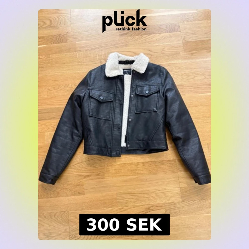 Väldigt fin, Svart teddyjacka från FB Sister i storlek XS. Jackan har en mjuk, beige teddykrage och hel teddyfoder på insidan. Yttermaterialet är skinnimitation med två stora bröstfickor och knappar framtill. Croppad passform och långa ärmar ger en fin look. Köpt för 500. Säljer för 300.