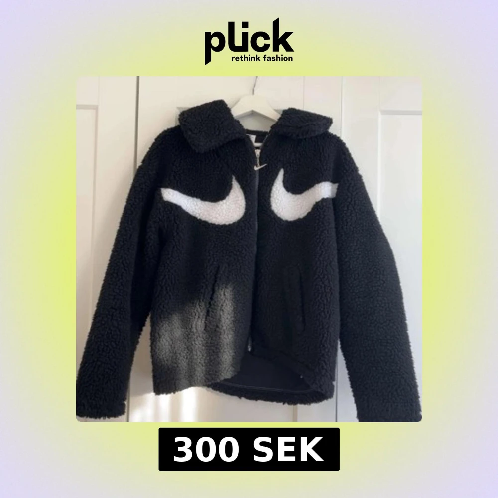 Svart teddyjacka från Nike i storlek XS med stora vita swoosh-loggor på bröstet. Jackan har dragkedja framtill, klassisk krage och är tillverkad i mjukt fleece-material. Perfekt för dig som vill ha en sportig och trendig look.