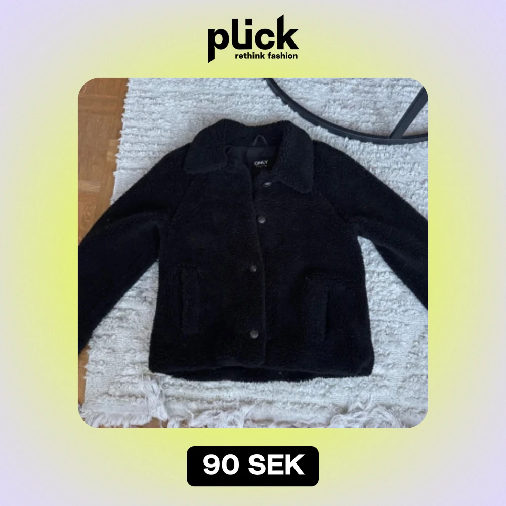 Säljer en supermysig svart teddyjacka från ONLY i storlek M. Jackan har en klassisk krage och knappar framtill. Perfekt för kyliga höst- och vinterdagar
