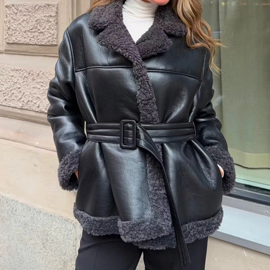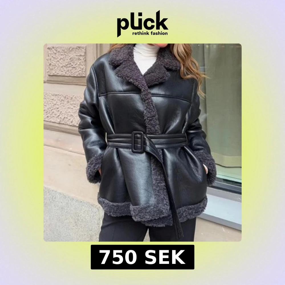 Svart teddyjacka med bälte