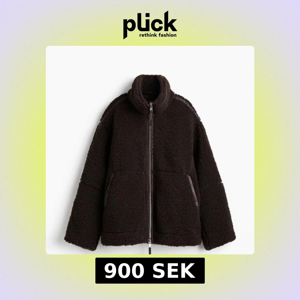 Mysig svart teddyjacka med hög krage och grov dragkedja framtill. Jackan har två stora fickor och detaljer i syntet längs ärmarna. Perfekt oversized passform för en chill look och extra värme under kalla dagar.