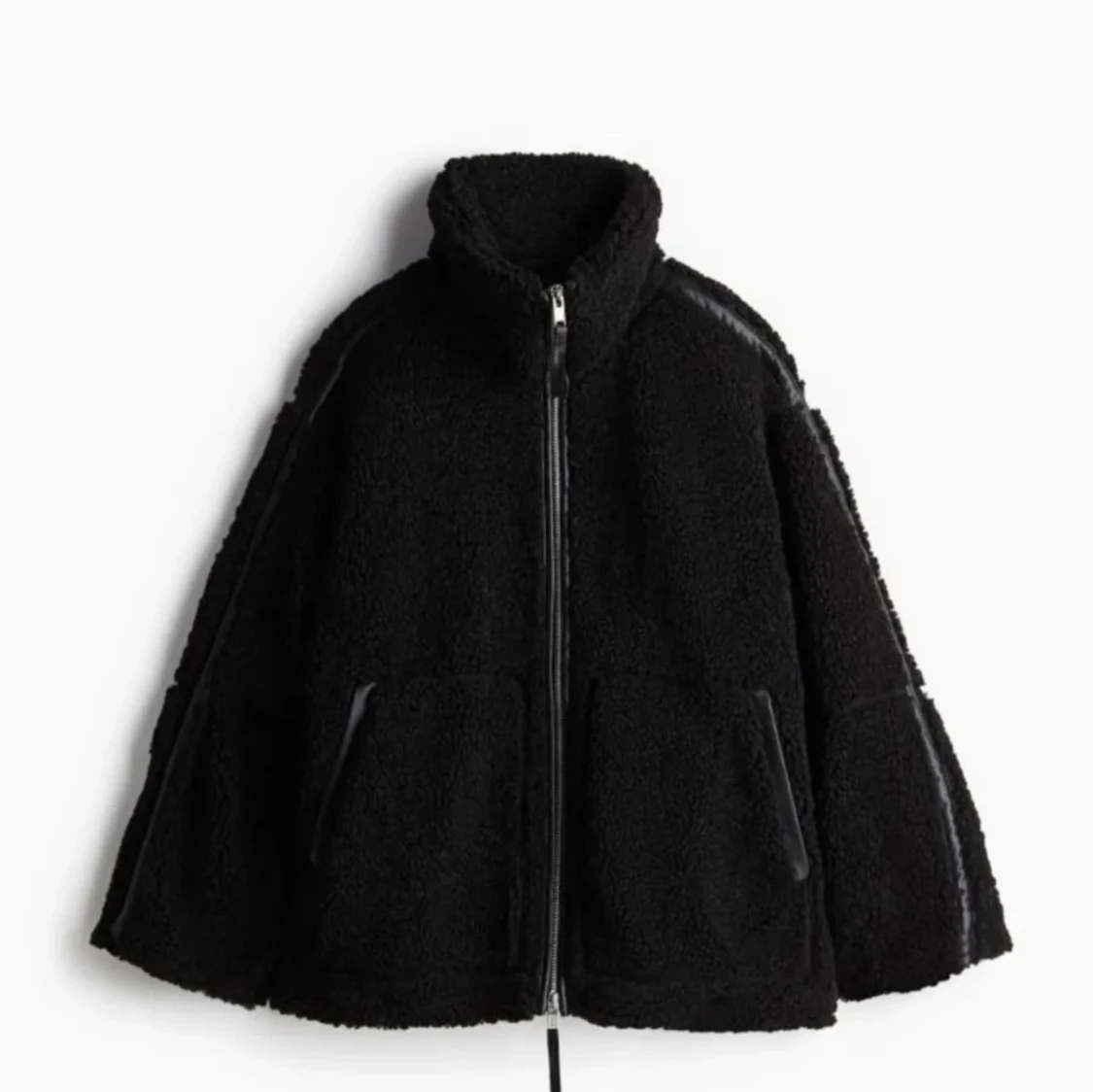 Mysig svart teddyjacka med dragkedja framtill och hög krage. Jackan har en oversized passform och stora fickor på sidorna!!💖