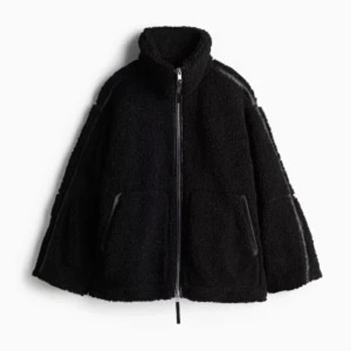 Mysig svart teddyjacka med dragkedja framtill. Jackan har en hög krage och två fickor på sidorna. Perfekt för kyliga dagar när du vill hålla dig varm och stilren.