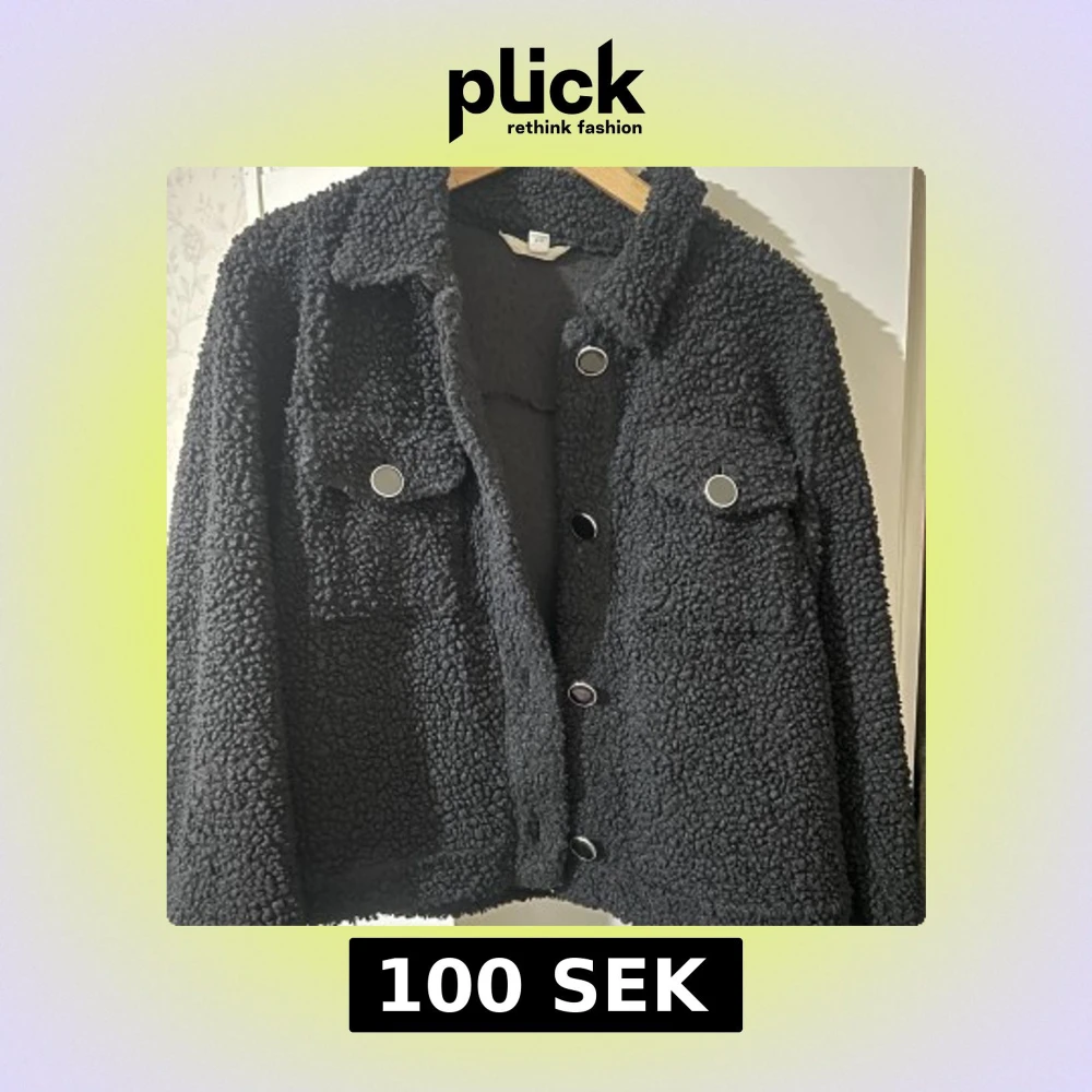 Mysig svart teddyjacka med stora knappar framtill. Jackan har två bröstfickor och en klassisk krage. Perfekt för kyliga dagar när du vill hålla dig varm och stilren.