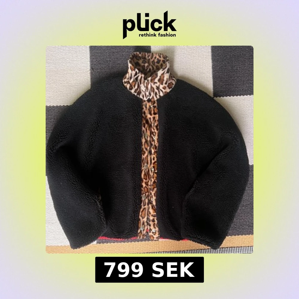 Svart teddyjacka med leopardkrage Stand