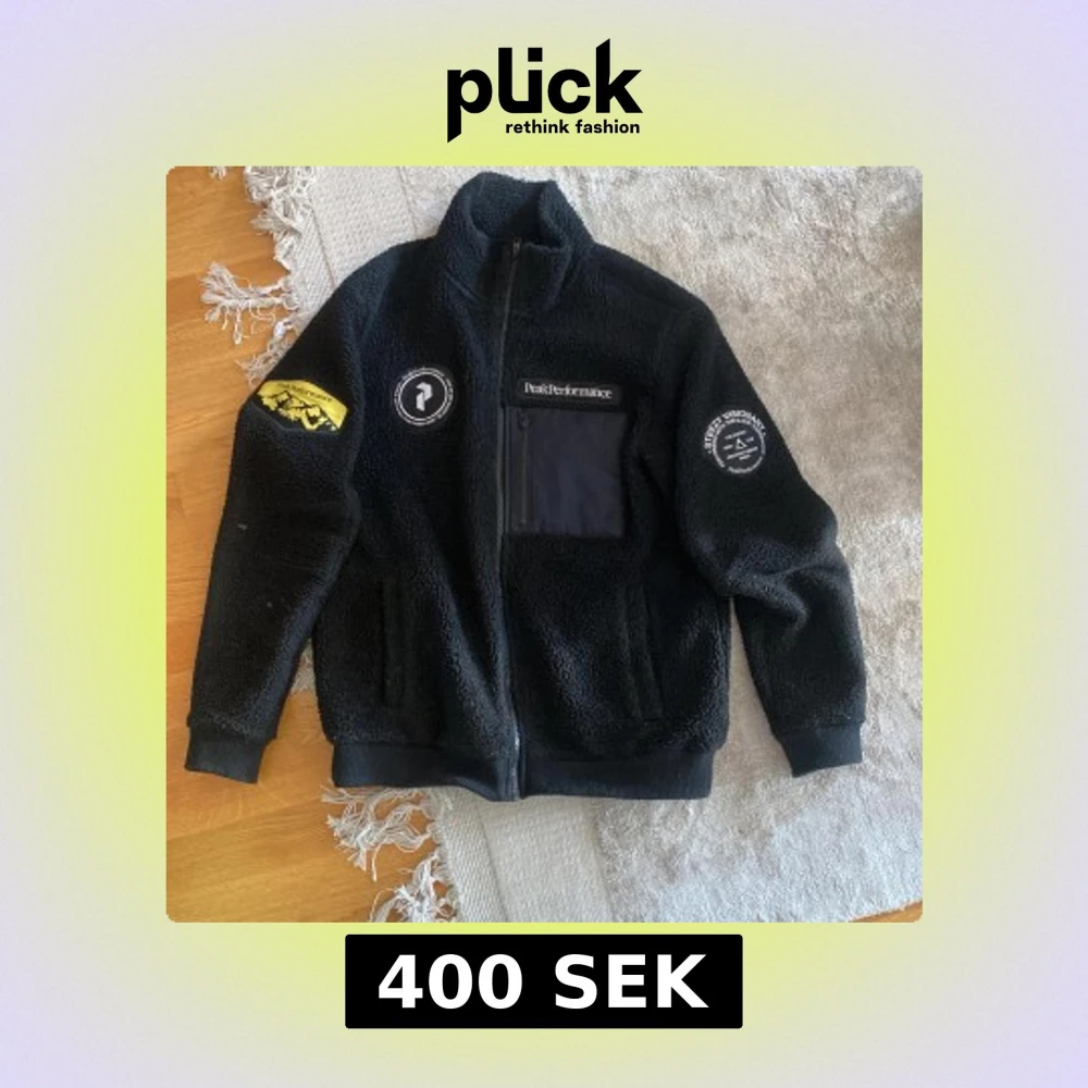 Svart teddyjacka från Peak Performance med broderade loggor och patchar på ärmarna. Jackan har hög krage, dragkedja framtill och en bröstficka med zip. Mjuk och fluffig fleece, perfekt för kyliga dagar. Stora loggan på ryggen ger en clean och sportig vibe.