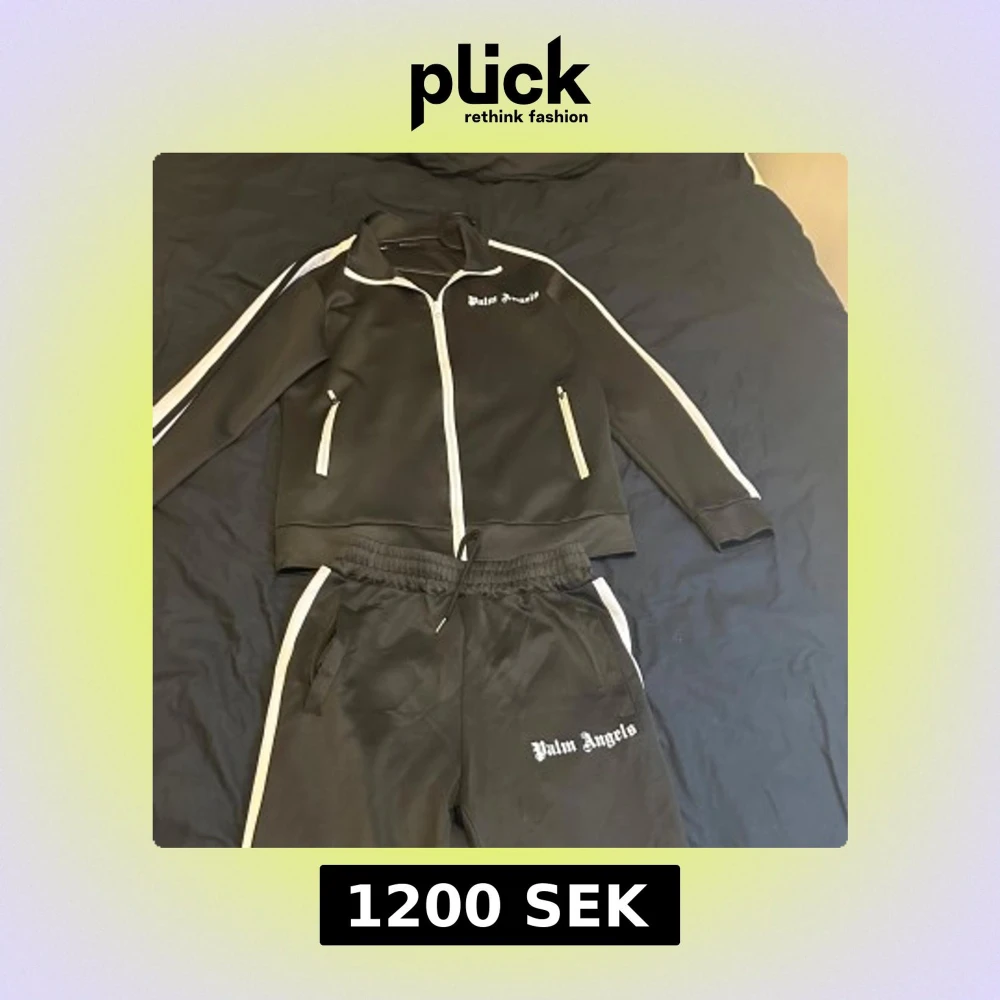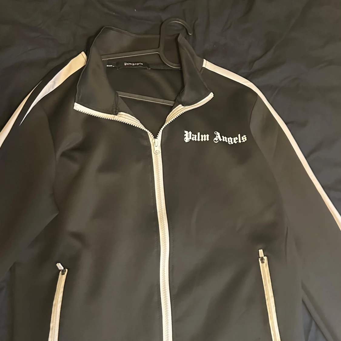 Svart tracksuit från Palm Angels med vita detaljer och dragkedja framtill. Jackan har vita ränder längs ärmarna och logga på bröstet. Snygg sportig look med ståkrage och två fickor med dragkedja. Perfekt för dig som gillar streetwear.