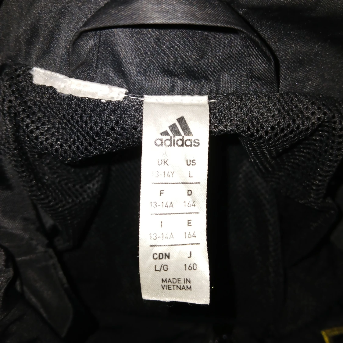 Säljer en svart träningsjacka från Adidas med Union Berlin-logga och vita ränder på ärmarna. Jackan har dragkedja och är långärmad, perfekt för sportiga aktiviteter. Den har även ett tryck på baksidan som firar 100 år av Stadion An der Alten Försterei. Den passar folk som är mellan 160-175 cm