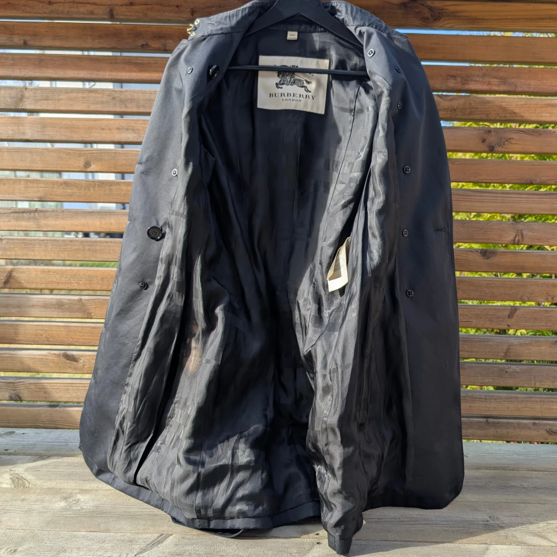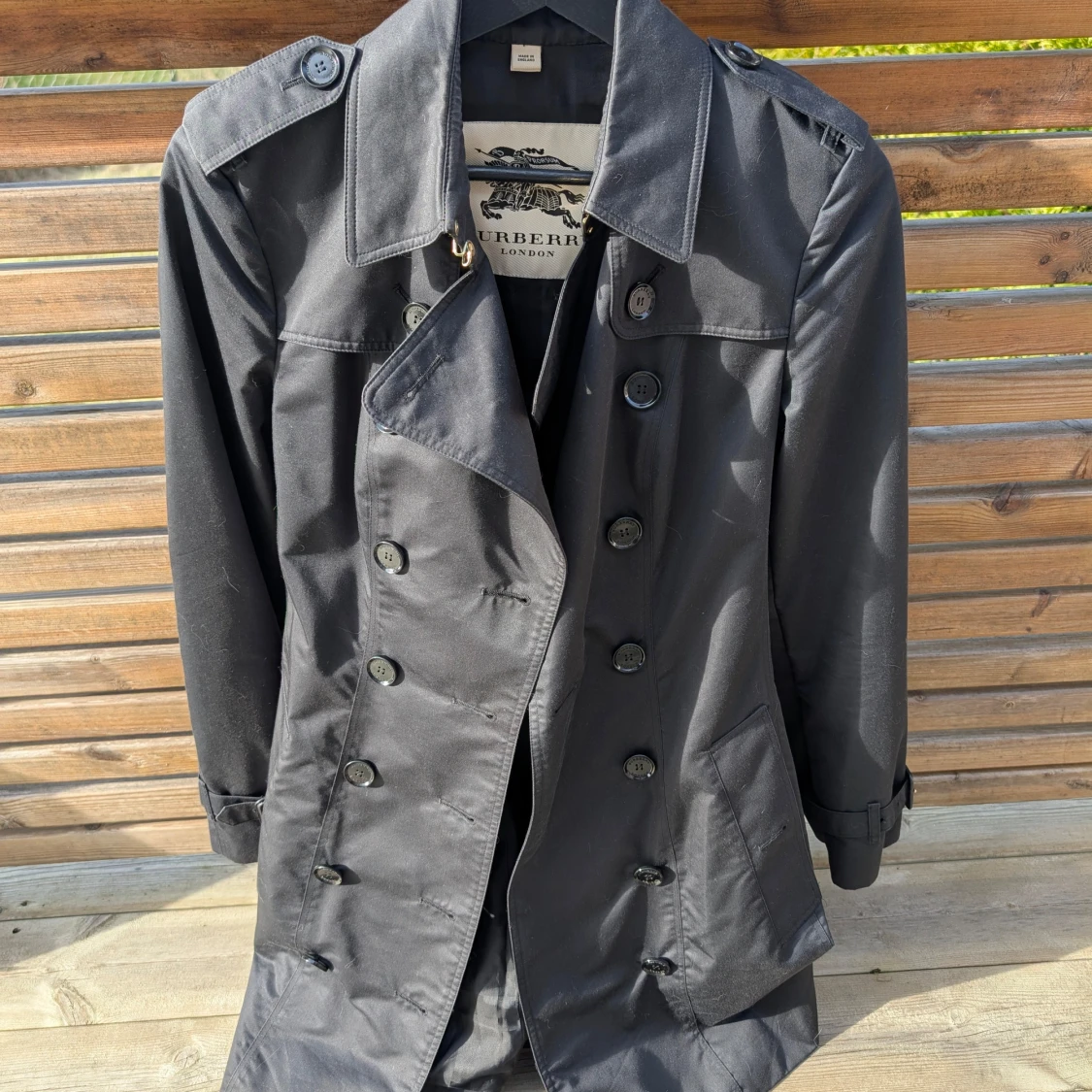 Snygg svart trenchcoat från Burberry med klassisk design. Jackan har ett bälte i midjan för en justerbar passform. Perfekt för en stilren look. Används bara en handfull gånger. i perfekt skick Försäljningsorsak till graviditet nypris:24000:- Pris kan diskuteras vid snabbt köp
