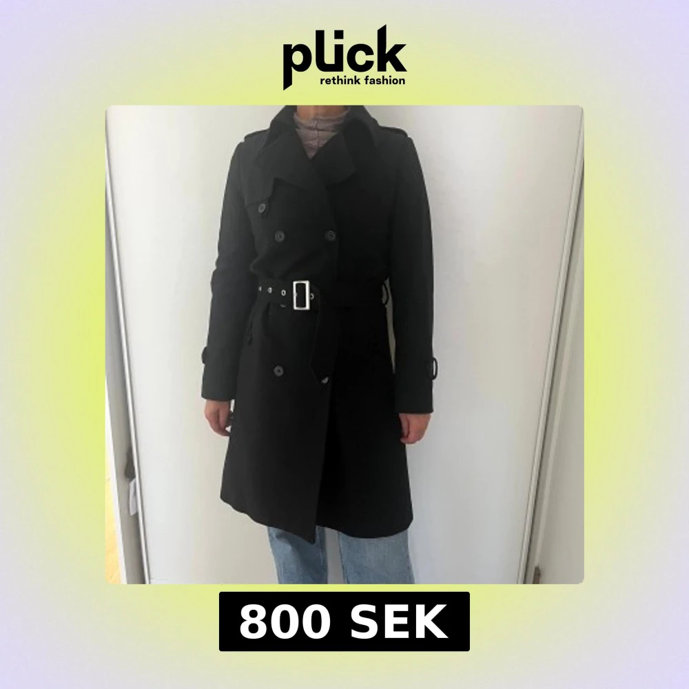 Svart figursydd ullkappa med skärp, x-small, gott skick. Kom gärna med frågor eller bud!
