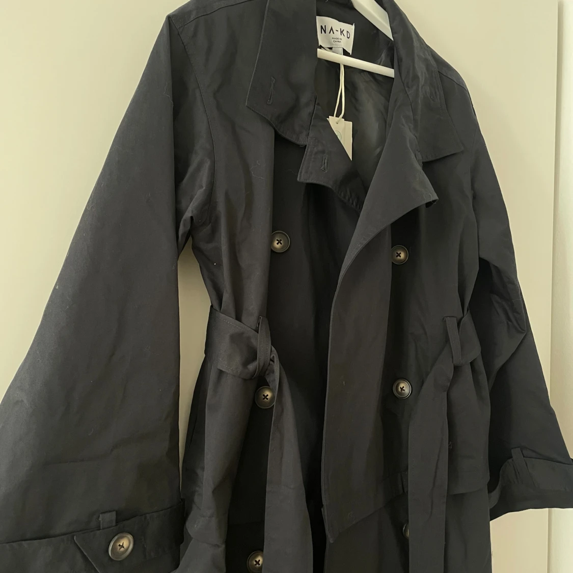 Helt oanvänd, lappen kvar. Storlek 32. Går att ta av nederdelen och göra till en kort trenchcoat också, som två jackor i en. Bra till hösten då den har en tålig yta.