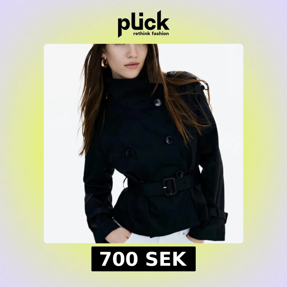 Säljer denna populära och snygga svarta trenchcoat med dubbelknäppning och bälte i midjan. Jackan har långa ärmar och en stilren design som passar perfekt för höst och vår. Perfekt för att ge en elegant touch till din outfit. Helt slutsåld, ny med prislapp