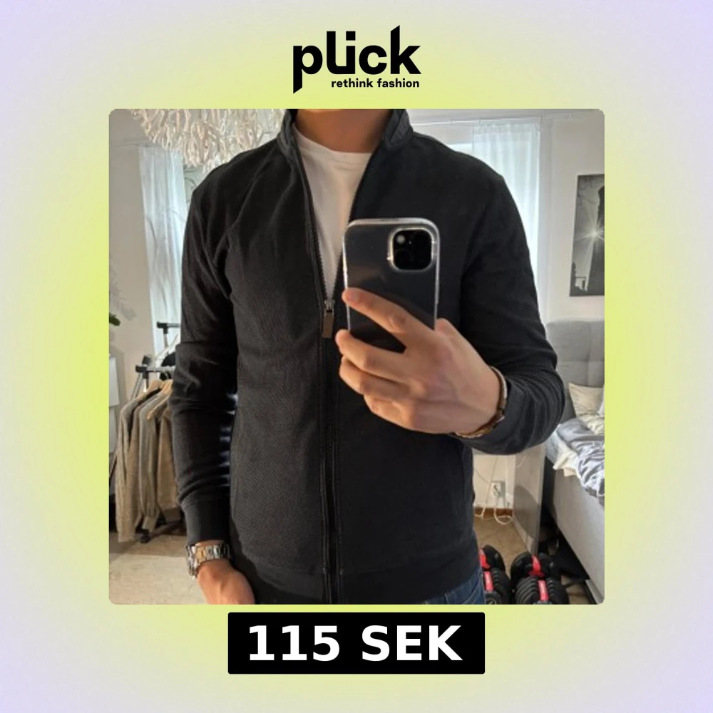 Säljer en svart tröja från Dressmann i storlek S. Tröjan har diskret struktur i tyget, hel dragkedja framtill och ståkrage. Perfekt för dig som gillar en clean och stilren look. Passar till jeans eller chinos för en avslappnad vibe.
