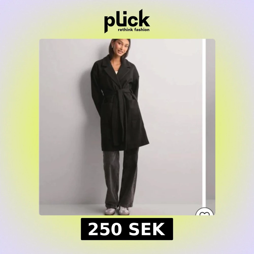 svart kappa i storlek XS från Pieces med knytbälte i midjan. Köpt från Nelly. Aldrig använd. Lite tunnare kappa, perfekt nu till våren. Köparen står för frakten 🩷