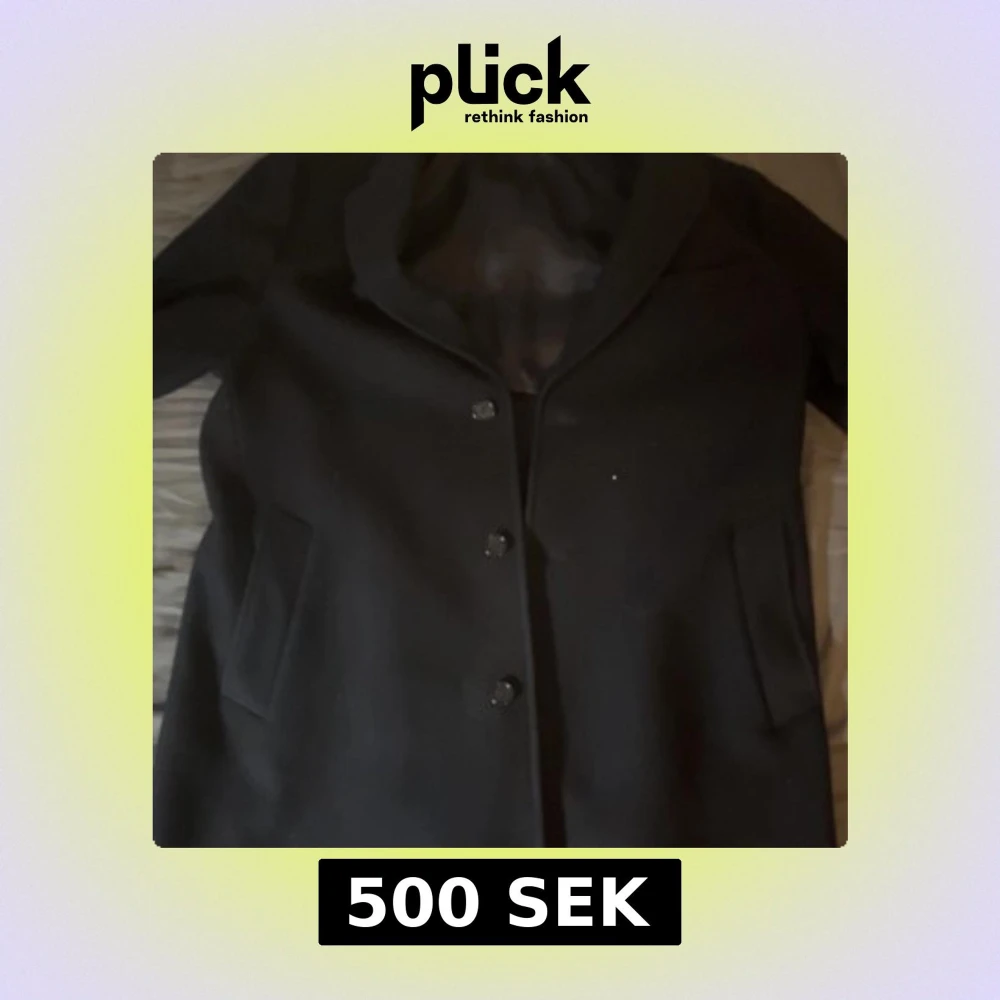 Elegant svart ullrock med knappar framtill. Tillverkad av italienskt tyg, perfekt för en stilren look. Kappan har en klassisk design med långa ärmar och en slät yta. Pris kan diskuteras vid snabb och smidig affär!