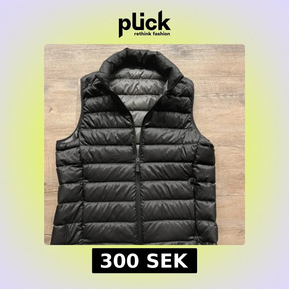 Stilren svart ultra light väst från Uniqlo. Västen har en hel dragkedja framtill och två sidofickor med dragkedja. Perfekt att slänga över en hoodie eller tröja för extra värme. Enkel och clean design som funkar till många outfits.