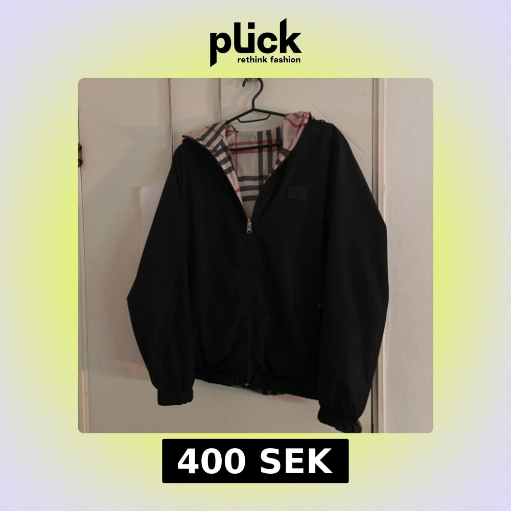 Säljer en vändbar burberry jacka med svart utsida och rutig insida i beige, rött och svart. Jackan har dragkedja och långa ärmar, perfekt för höst och vår. Den rutiga sidan ger en klassisk look medan den svarta sidan är mer diskret. Det finns ett litet hål på framsidan av den svarta sidan men inget som syns jättemycket, pris kan diskuteras!