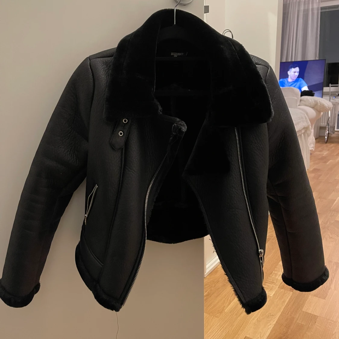 En super fin och skön jacka med underbart tyg inuti som gör att den passar perfekt nu under varmare vinter dagar eller höst/våren😍 Den är i storlek 36 men är stor i storleken så passar M också beroende på hur man vill att den sitter.