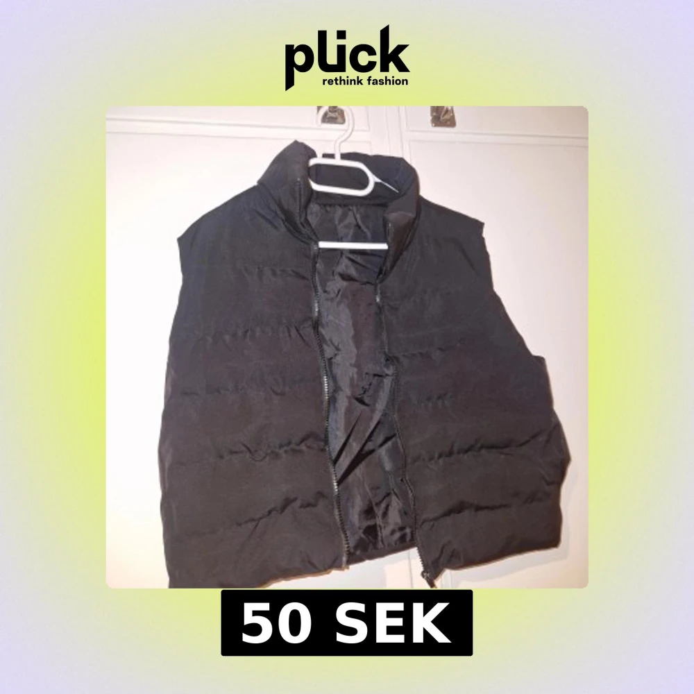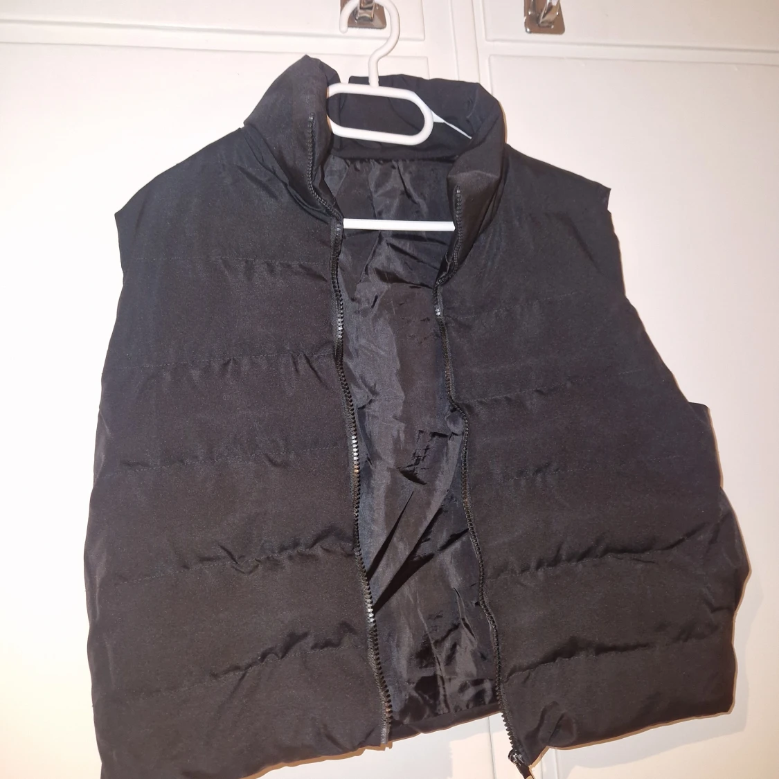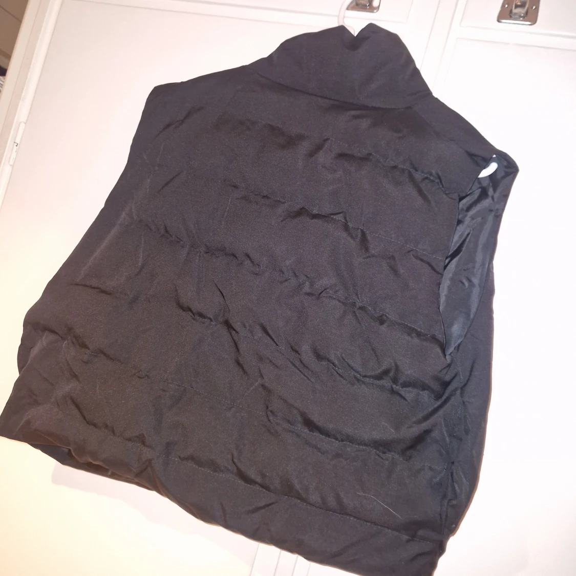 En svart tunnare väst med hög krage och dragkedja framtill. Västen är quiltad och har en enkel, stilren design utan synliga loggor eller mönster. Perfekt att slänga över en hoodie för extra värme under kyliga dagar. Aldrig använd