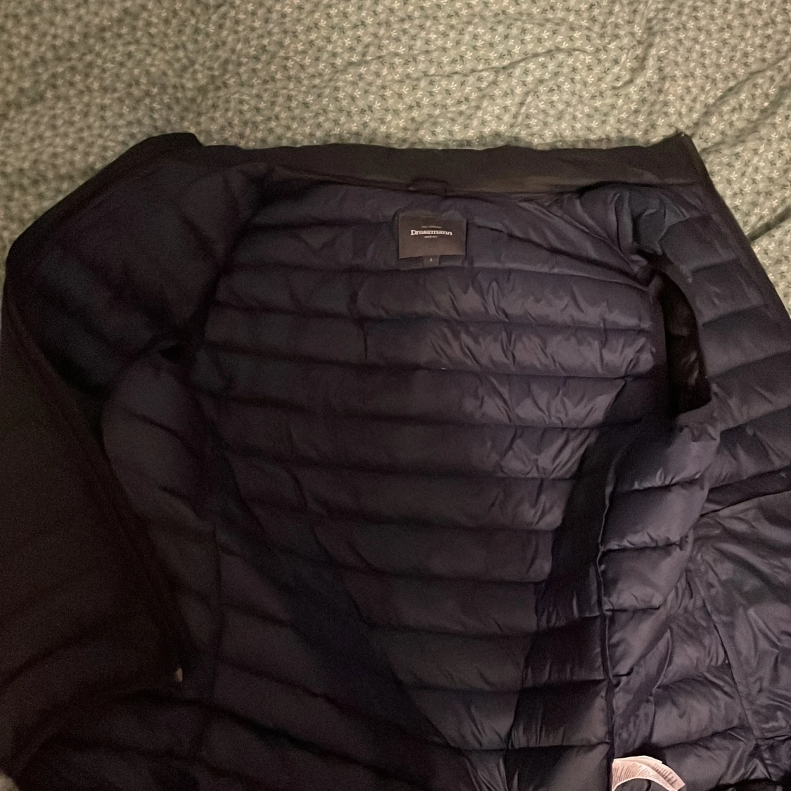 Säljer en svart väst från Dressmann med horisontella sömmar och dragkedja framtill. Jackan är lätt vadderad och har en stilren look som passar perfekt till kyligare dagar. Enkel och snygg design utan krusiduller. Storlek: L. Rekommenderas att ha något varmt under, för att sitta tajt. Håller värme bra! Ett jätte pyttelitet hål på framsidan.