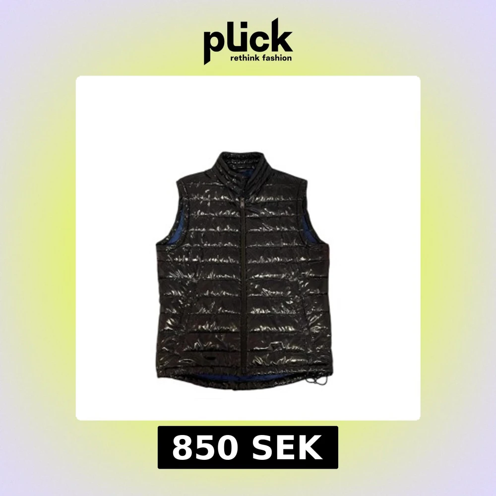 Snygg svart quiltad dunväst från Boss med en glansig finish. Västen har en dragkedja framtill och en blå insida som ger en fin kontrast. Perfekt för lager-på-lager under kyliga dagar.