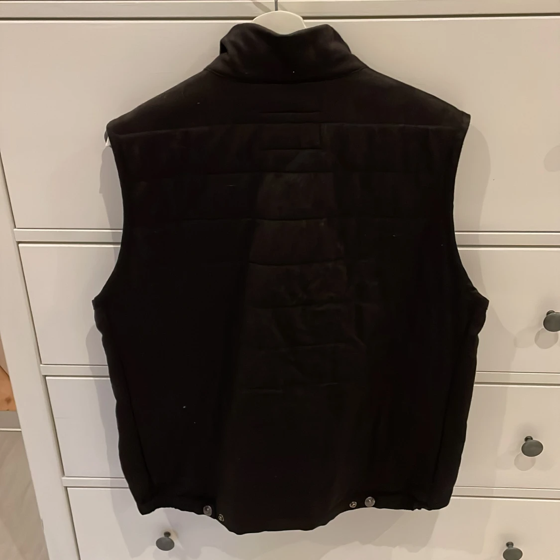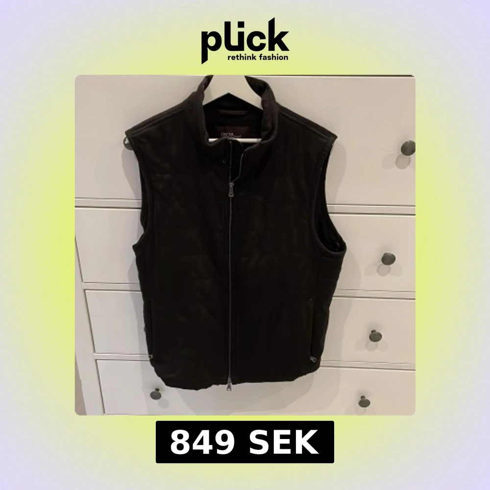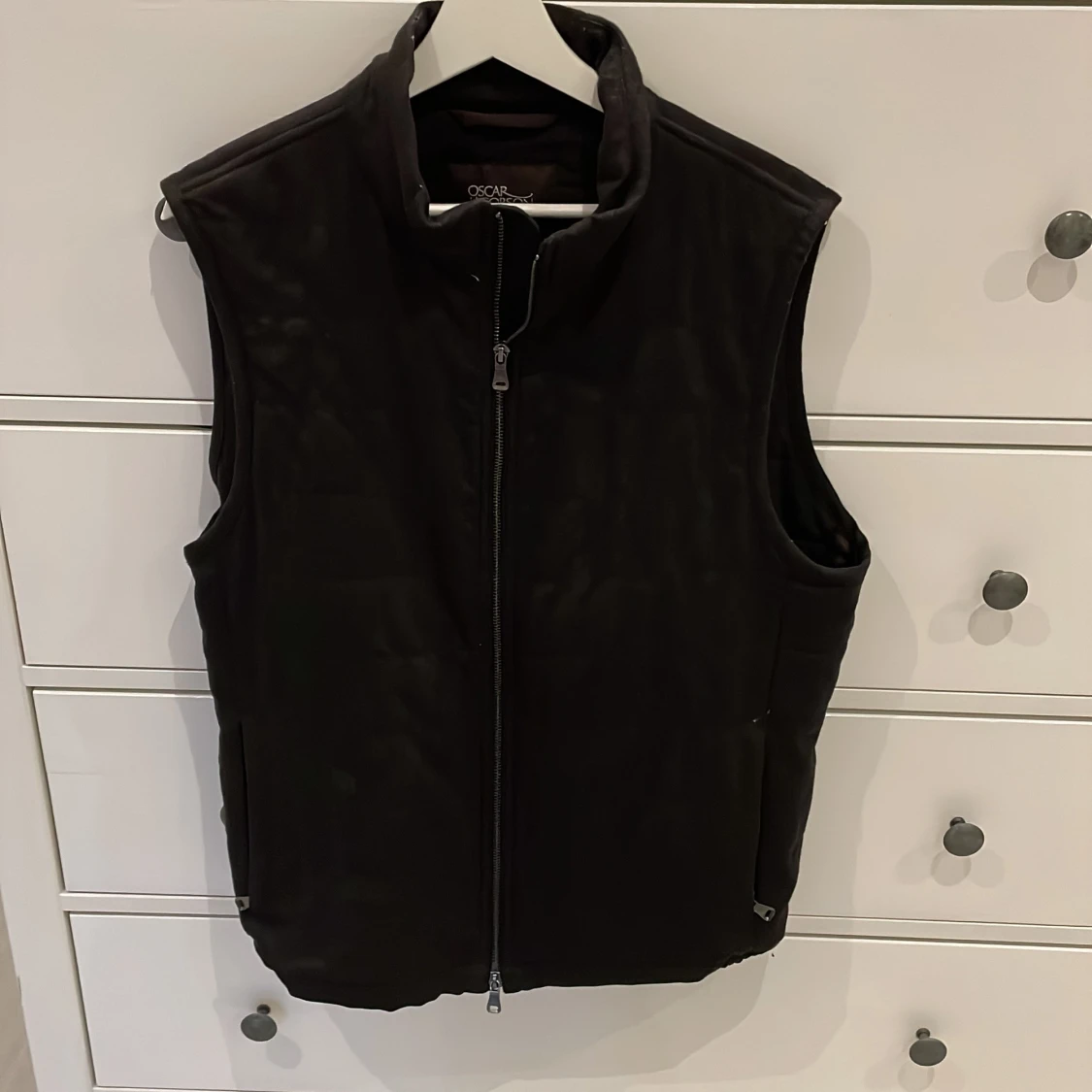 Snygg svart väst från Oscar Jacobson med hög krage och hel dragkedja framtill. Västen har en stilren design med diskreta fickor på sidorna och lätt quiltade detaljer på ryggen. Perfekt att slänga över en hoodie eller tröja när det är kyligt ute.