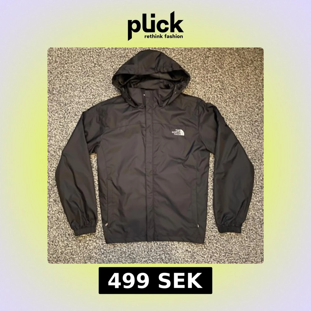 Säljer en svart vindjacka från The North Face Summit Series med huva och dragkedja. Jackan har logga på bröstet och ryggen, elastiska muddar och två sidofickor. Perfekt för blåsiga dagar och outdoor-aktiviteter. Storleken är L men sitter som S, jag är 183 66kg och den passar mig perfekt