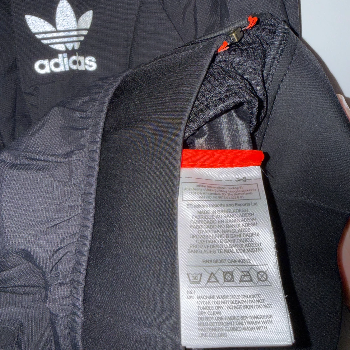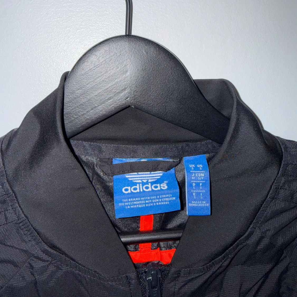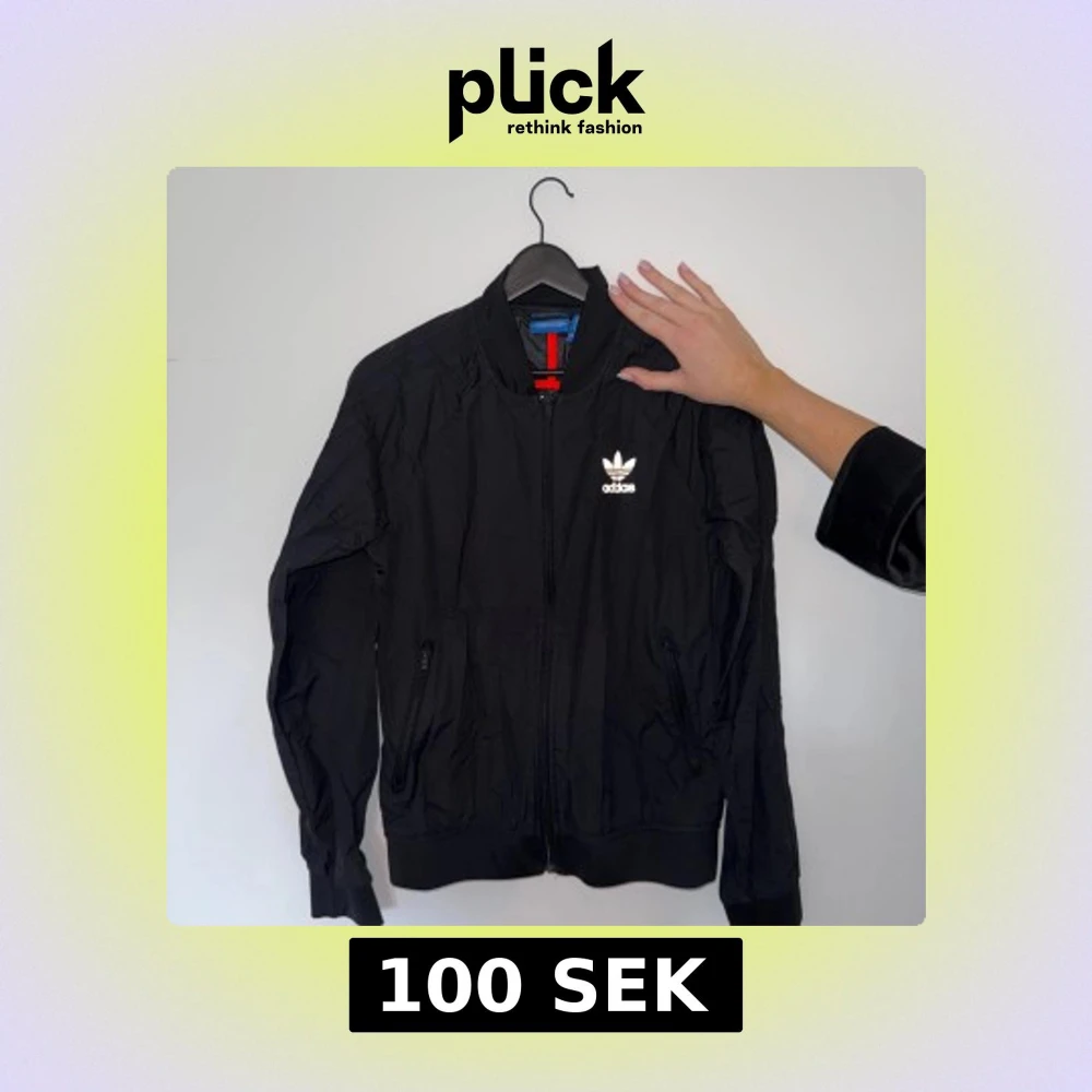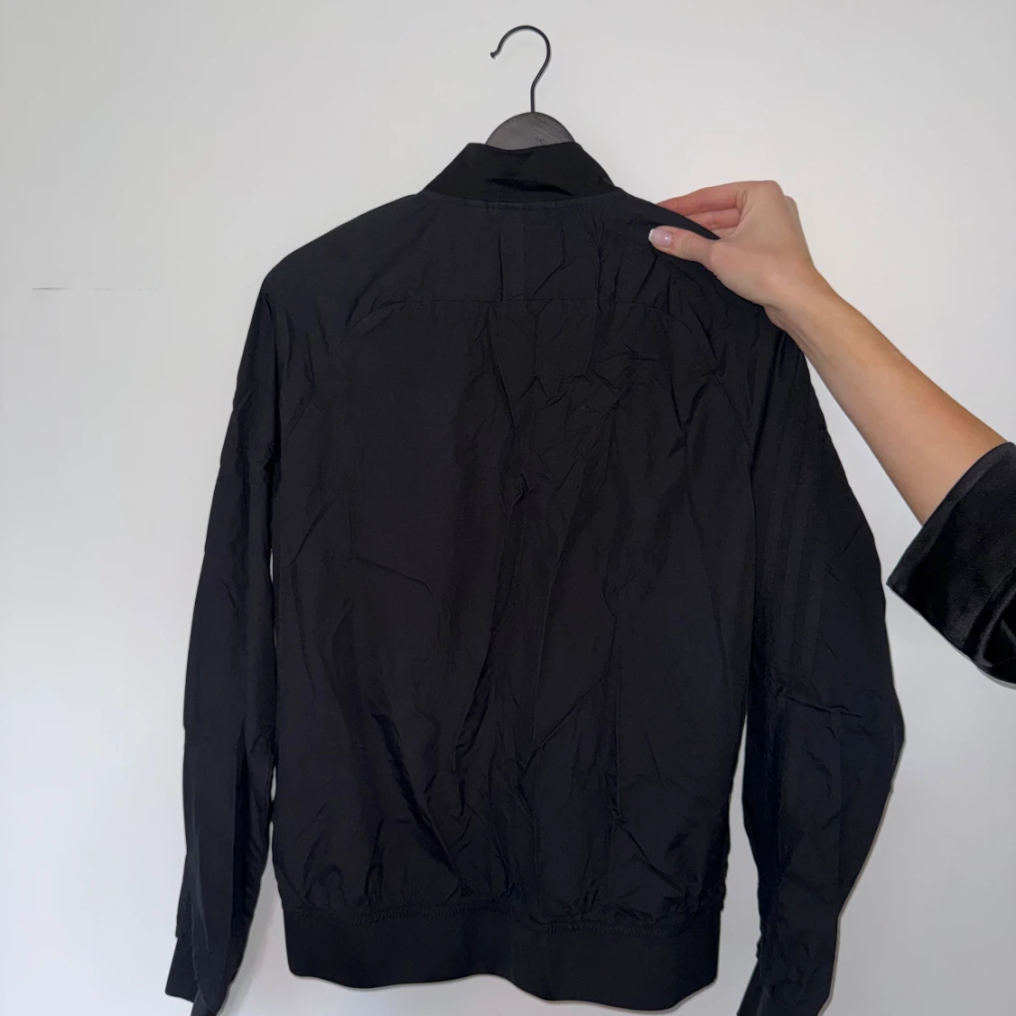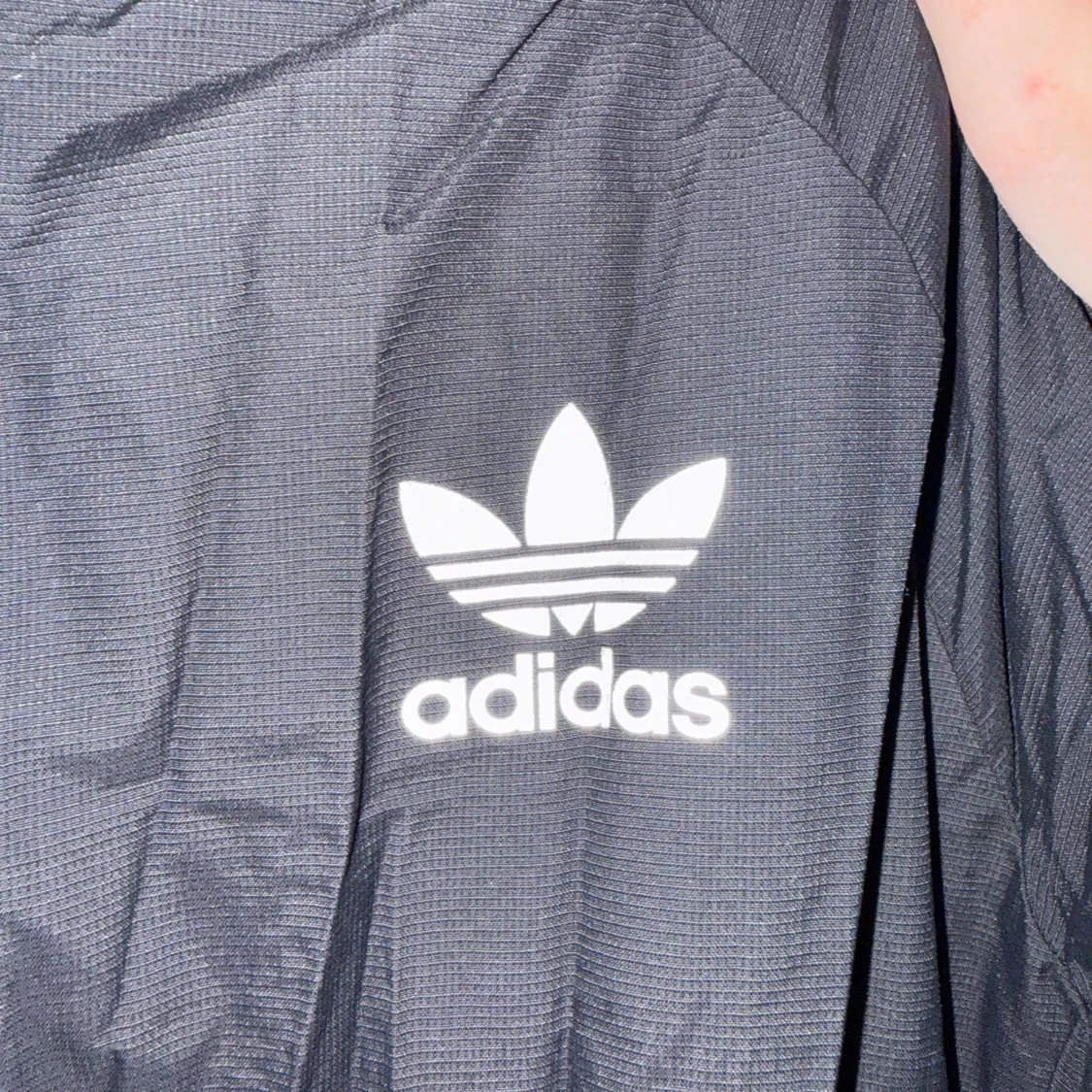 Svart vindjacka från Adidas med klassisk vit logga på bröstet. Jackan har dragkedja framtill, två fickor med dragkedja och ribbade muddar vid ärmslut och nederkant. Perfekt för en sportig och stilren look.