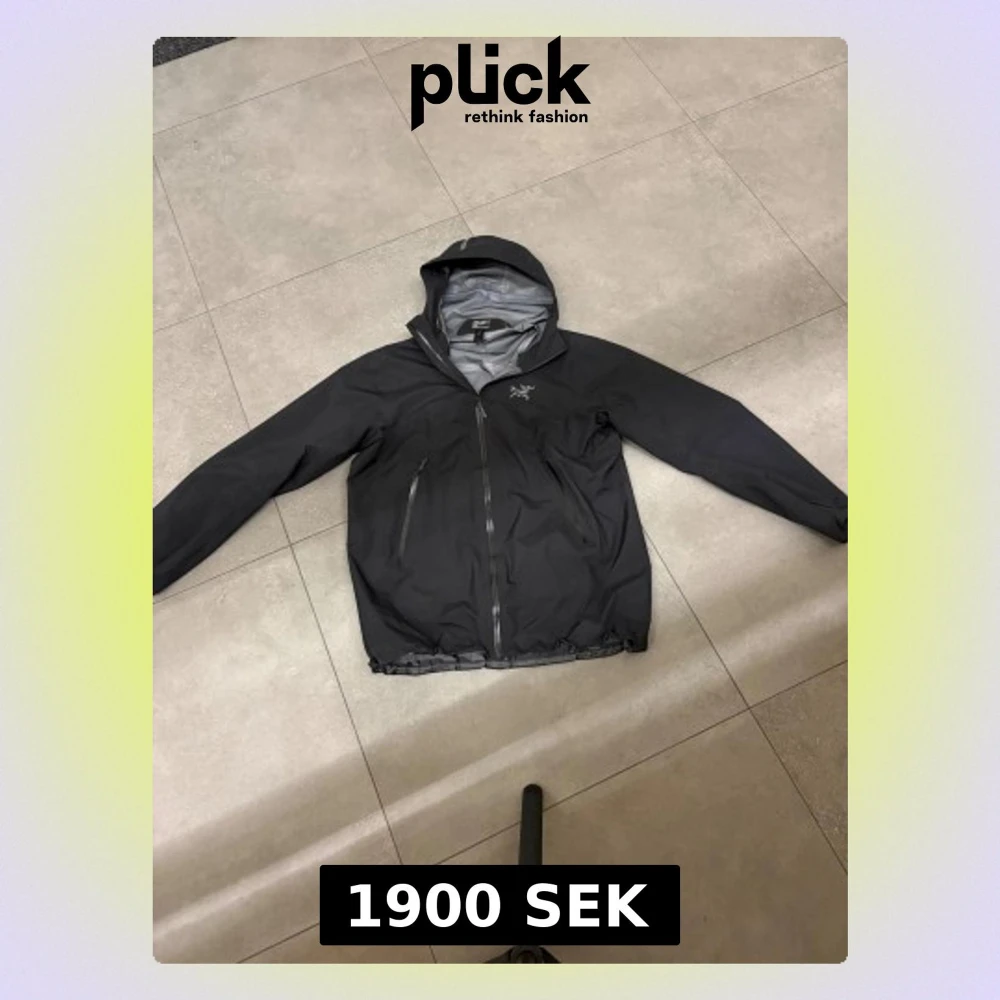 Arc'teryx svart vindjacka med huva och två snedställda dragkedjefickor framtill. Jackan är lätt, kan packas ihop och har en stilren design med logga på bröstet. Perfekt för utomhusaktiviteter och skyddar mot vind och lätt regn.