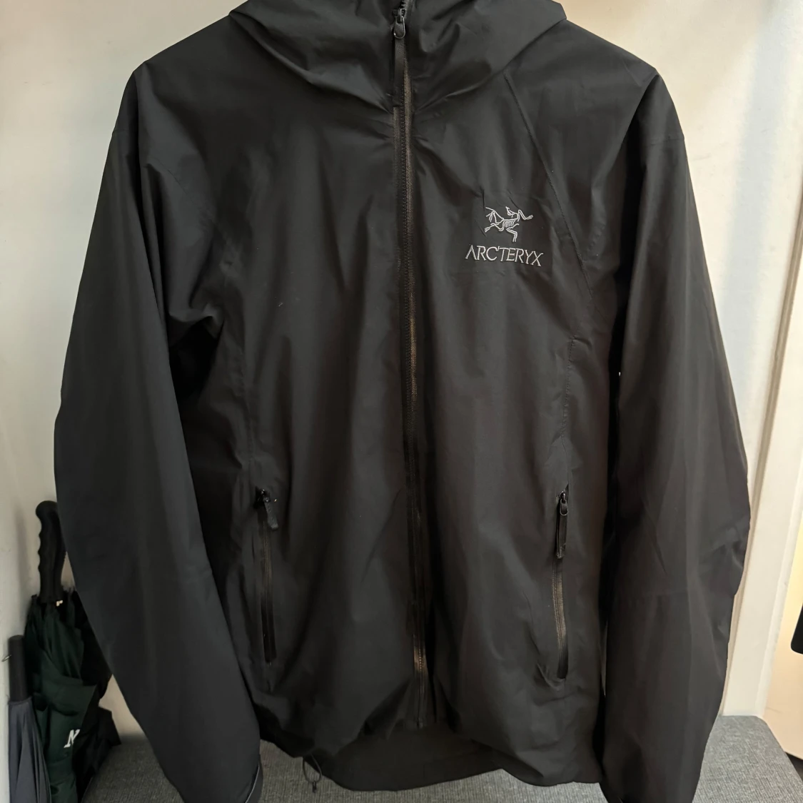 Säljer en svart vindjacka från Arc'teryx i mycket bra skick. Jackan har en praktisk huva och dragkedja framtill. Perfekt för blåsiga dagar och utomhusaktiviteter. Den är lätt och smidig att ha med sig. Passar både till vardags och äventyr!