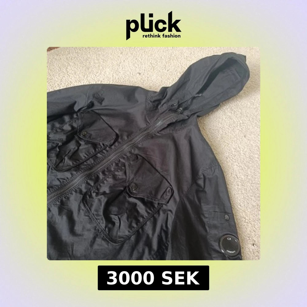 KOM MED BUD‼️⁉️Svart vindjacka från C.P. Company med huva, två stora bröstfickor med lock och knapp samt klassisk linsdetalj på ärmen. Jackan har dragkedja framtill och är tillverkad i tygg, perfekt för blåsiga dagar.