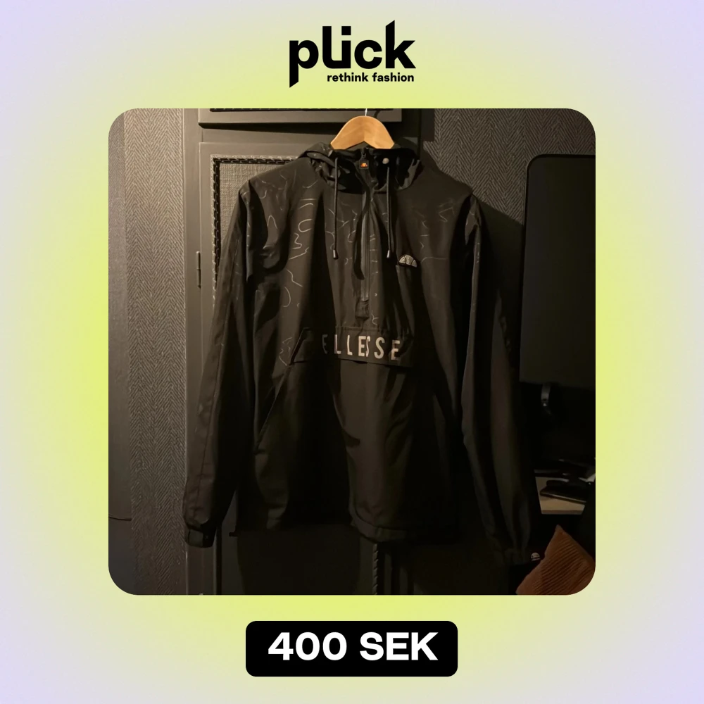 Säljer en svart vindjacka från Ellesse i mycket bra skick. Jackan har en justerbar huva och en stor ficka framtill med dragkedja. Perfekt för höst och vår med sitt stilrena utseende och bekväma passform. Passar både till vardags och lättare utomhusaktiviteter.