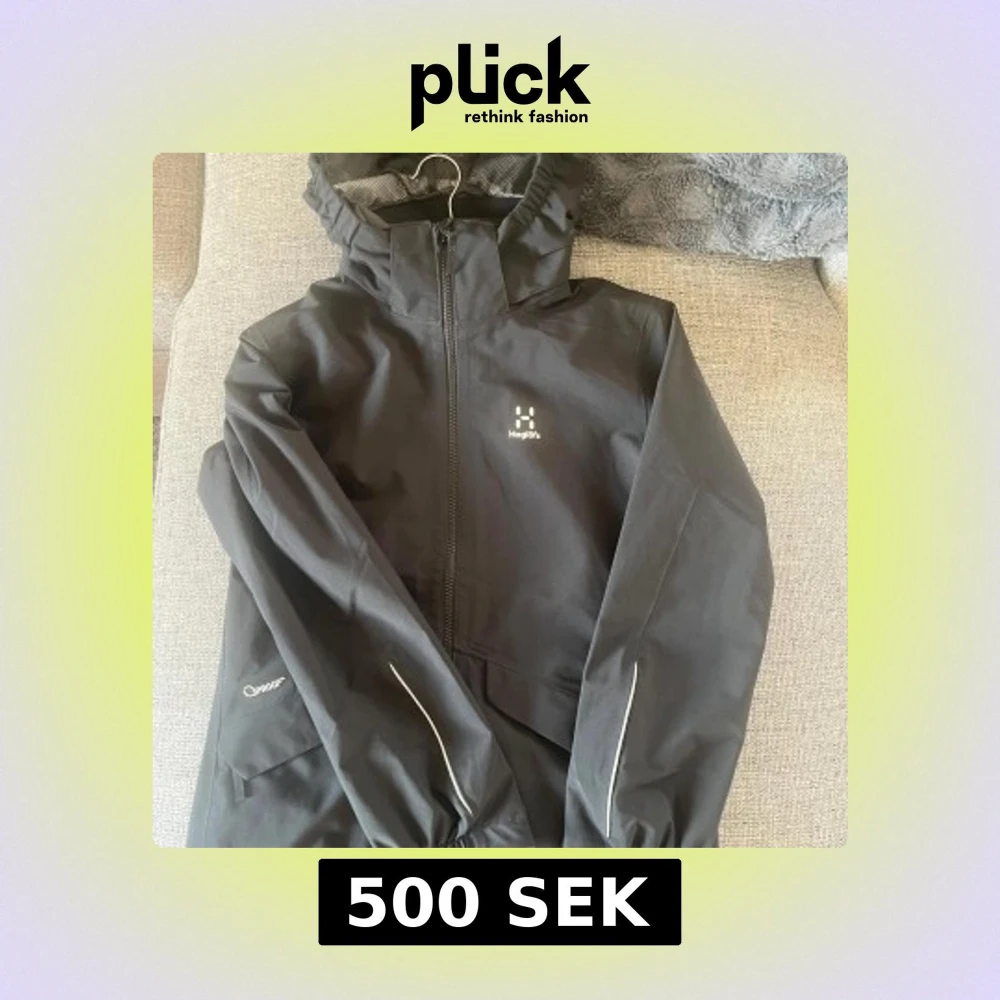 Säljer en svart vindjacka från Haglöfs med huva och dragkedja framtill. Jackan har reflekterande detaljer, meshfoder och är tillverkad i slitstark polyester. Perfekt för blåsiga dagar och outdoor-aktiviteter. Klassisk och stilren design med logga på bröstet.