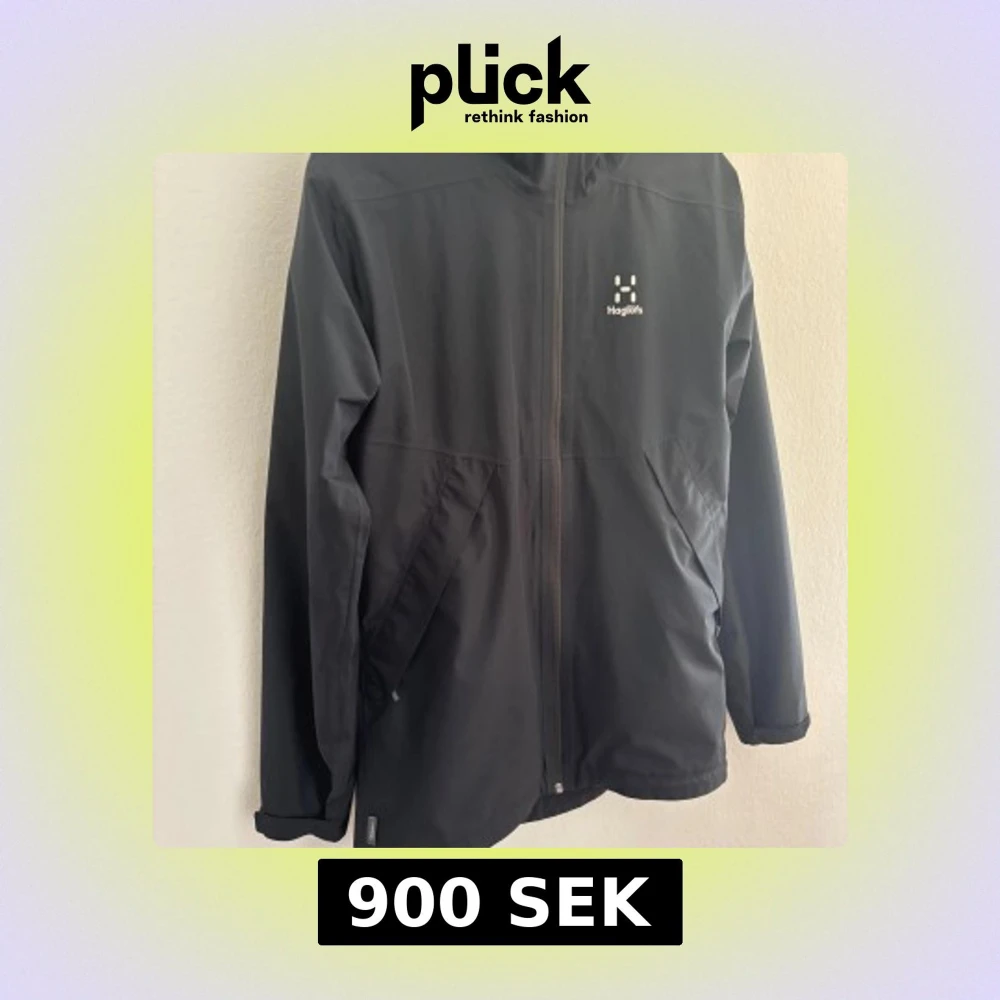 Säljer en svart vindjacka från Haglöfs med dragkedja framtill och två snedställda fickor. Jackan har lång ärm och minimalistisk design med liten logga på bröstet. Perfekt för blåsiga dagar.