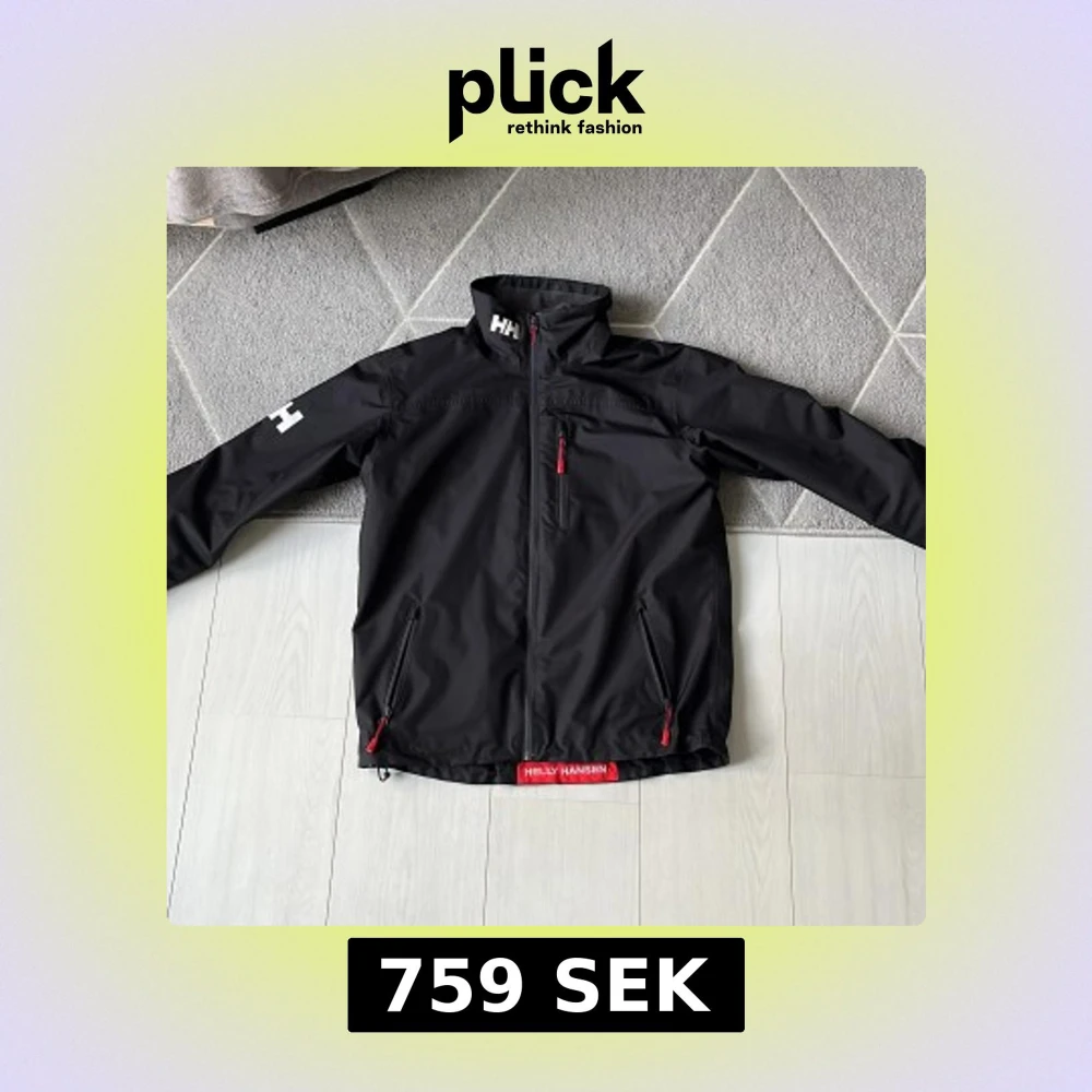 Svart vindjacka från Helly Hansen med hög krage, röda dragkedjor och HH-logga på ärm och krage. Inga defekter, förutom att tråden på dragkedjan låsnat (inget som påverkar jackan). Perfekt för blåsiga dagar. Pris kan diskuteras vid snabb affär