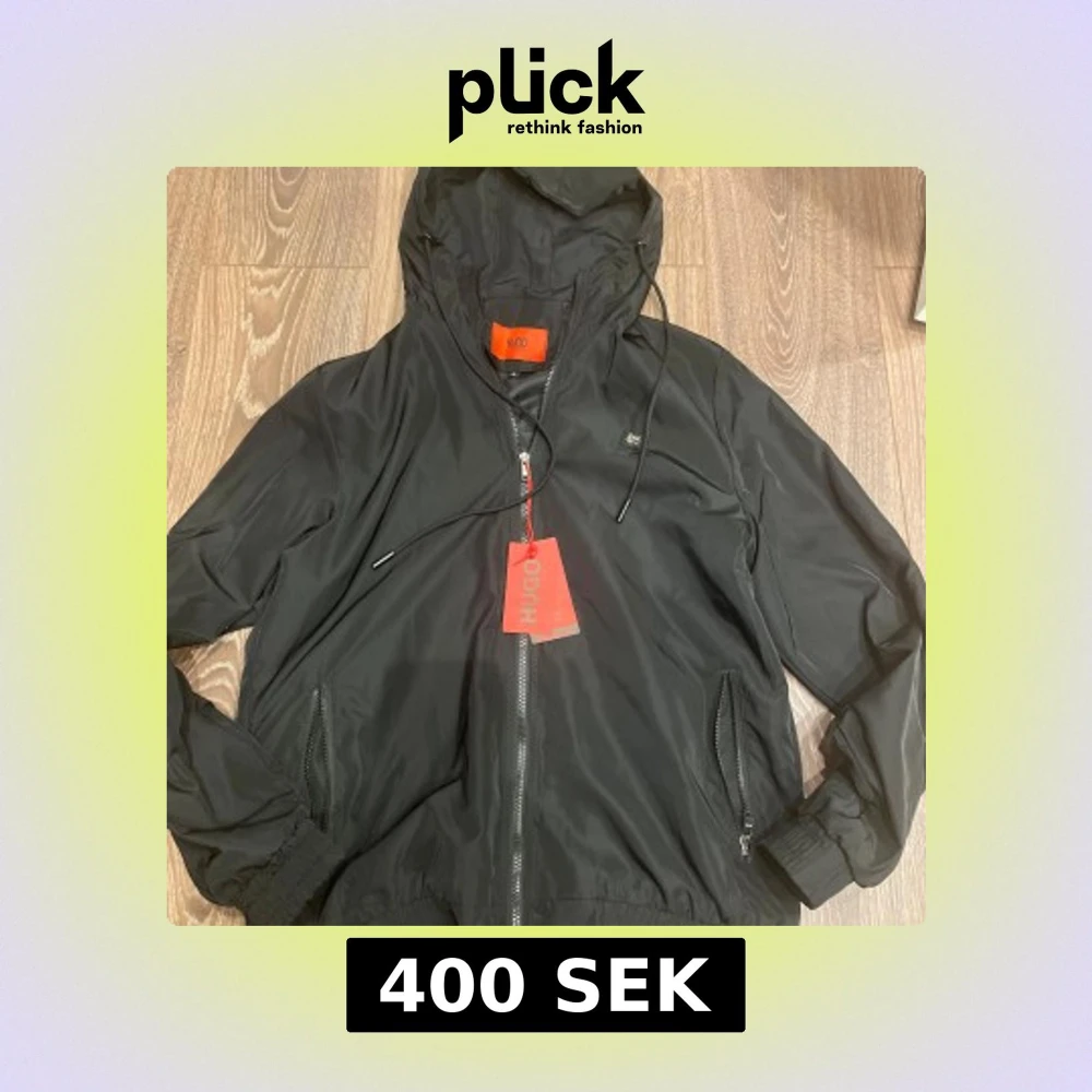 Säljer en svart vindjacka från Hugo Boss med huva och dragkedja framtill. Jackan har två fickor med dragkedja och en liten Hugo-logga på bröstet. Perfekt för blåsiga dagar och enkel att matcha med det mesta.