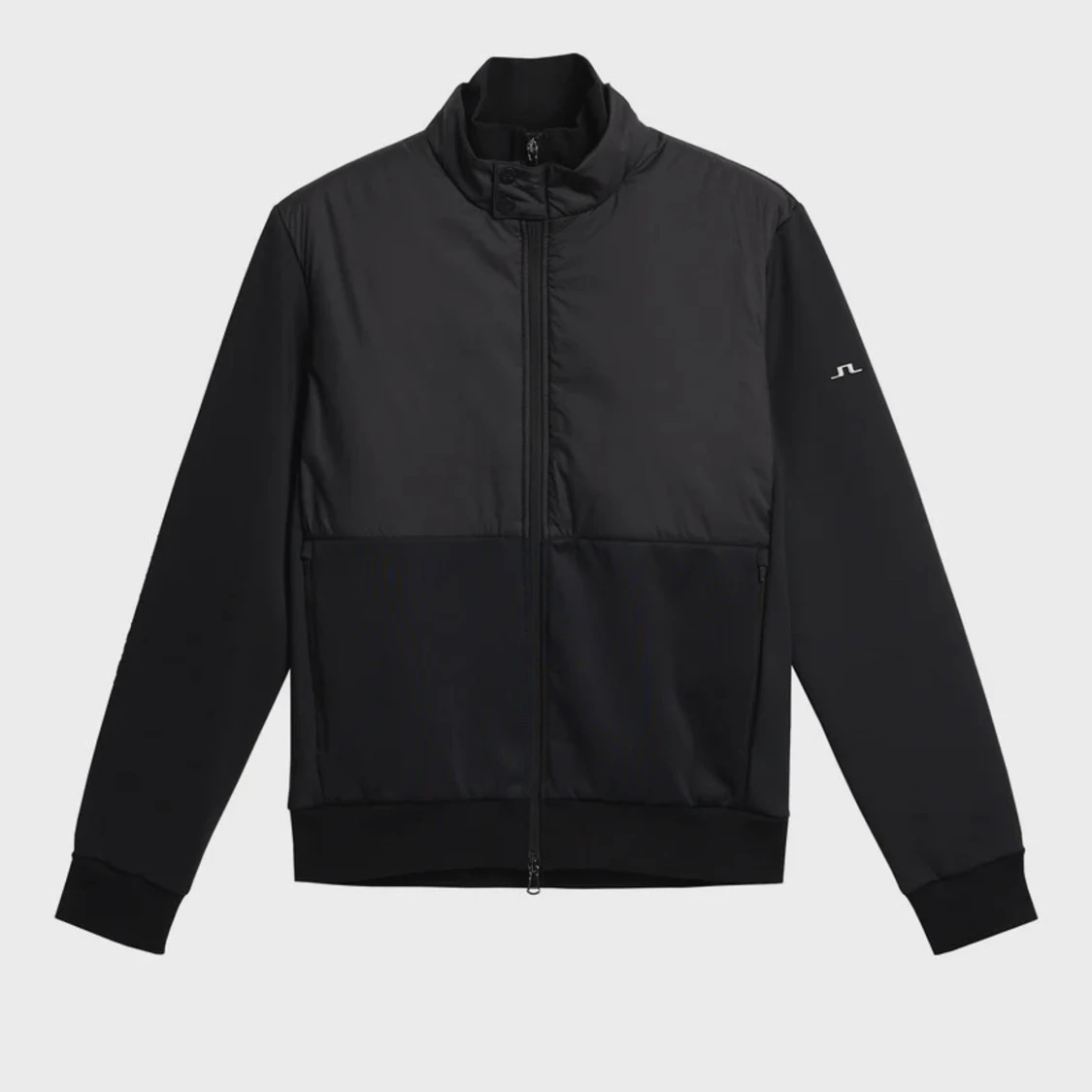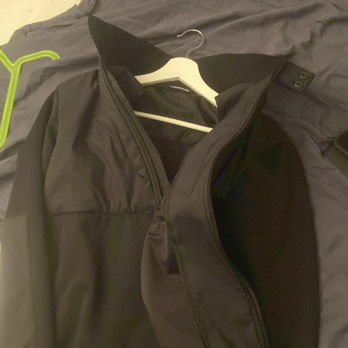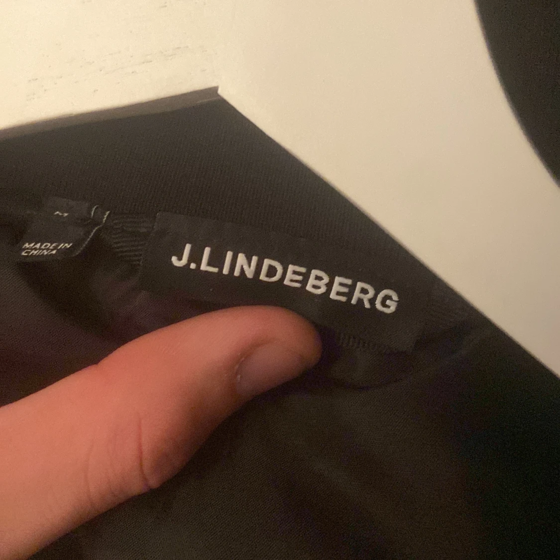 Snygg svart vindjacka från J.Lindeberg med minimalistisk design och diskret logga på ärmen. Jackan har hel dragkedja, hög krage och ribbade muddar. Materialet är lätt och känns sportigt, perfekt för blåsiga dagar. Klassisk passform och stilren look.