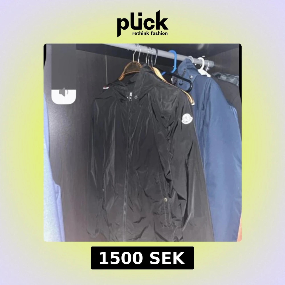 Svart vindjacka från Moncler med huva och dragkedja framtill. Jackan har Moncler-logga på vänster ärm och är tillverkad i lätt, glansig polyester. Perfekt för blåsiga dagar och har en clean, sportig look som funkar till streetwear.