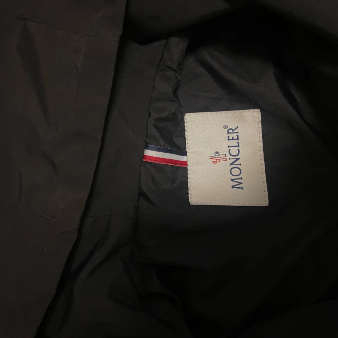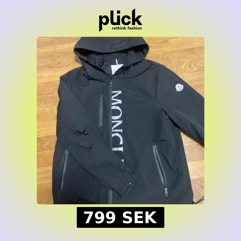 Svart vindjacka från Moncler med stor logga framtill, huva och tre dragkedjeförsedda fickor. Jackan har Moncler-märke på ärmen och diskret trikolor-detalj på ryggen. Perfekt för dig som vill ha en clean och stilren look.