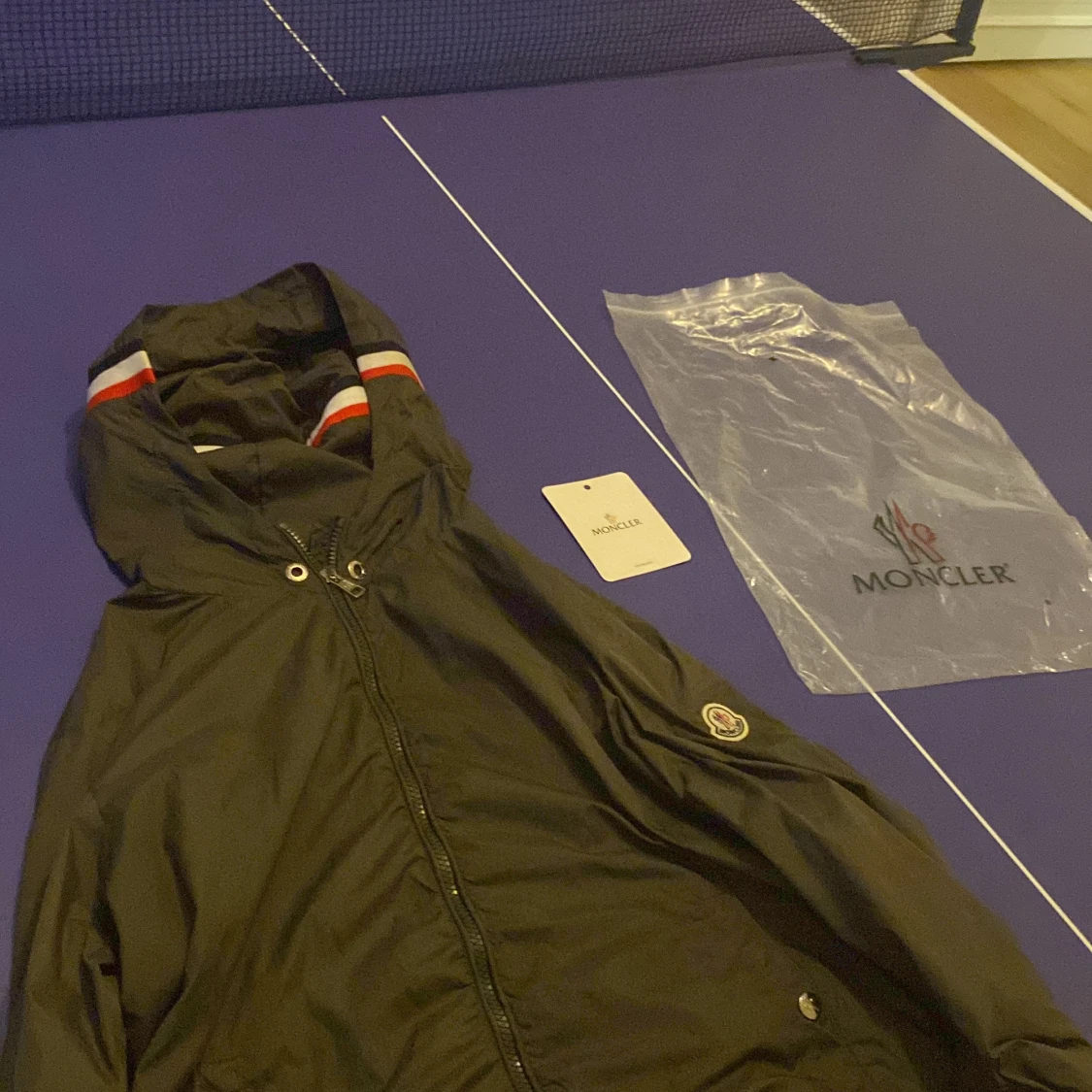 Hej säljer min moncler jacka, den är inte använd alls mycket. Säljer för den e lite för stor för mig men den är riktigt snygg och har scan i loggon och indtrics taggs, ni kan lista ut varför den säljs billigt