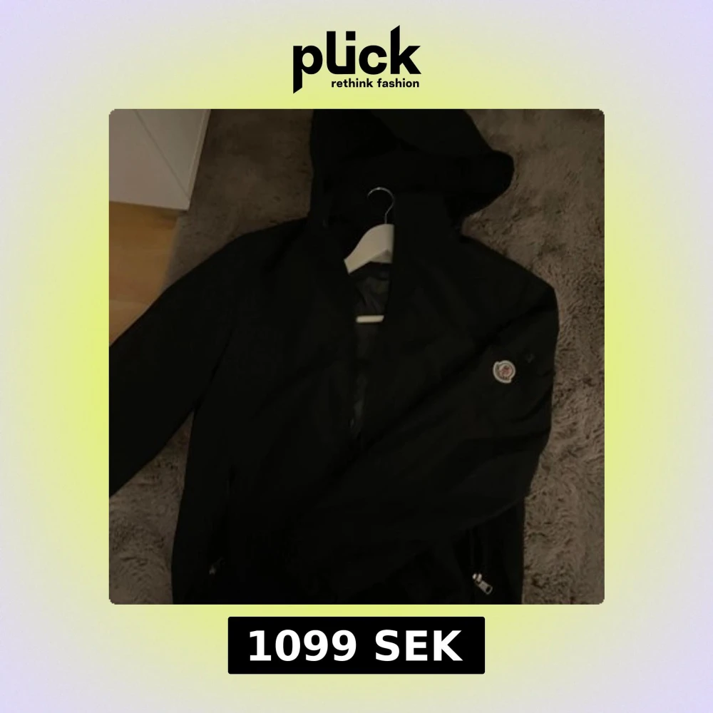 Säljer en svart vindjacka från Moncler med huva och dragkedja. Jackan har Moncler-logga på ärmen och coolt serietryck på insidan. Perfekt för dig som vill ha en stilren och funktionell jacka med streetkänsla.