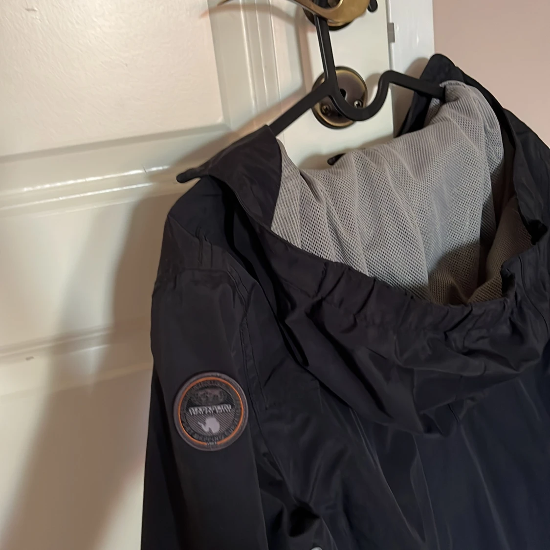 Svart vindjacka från Napapijri med huva och meshfoder. Jackan har en halvlång dragkedja framtill, stor logotyp på bröstet och norsk flagga. Patch med Napapijri på ärmen. Perfekt för dig som gillar street och outdoor.